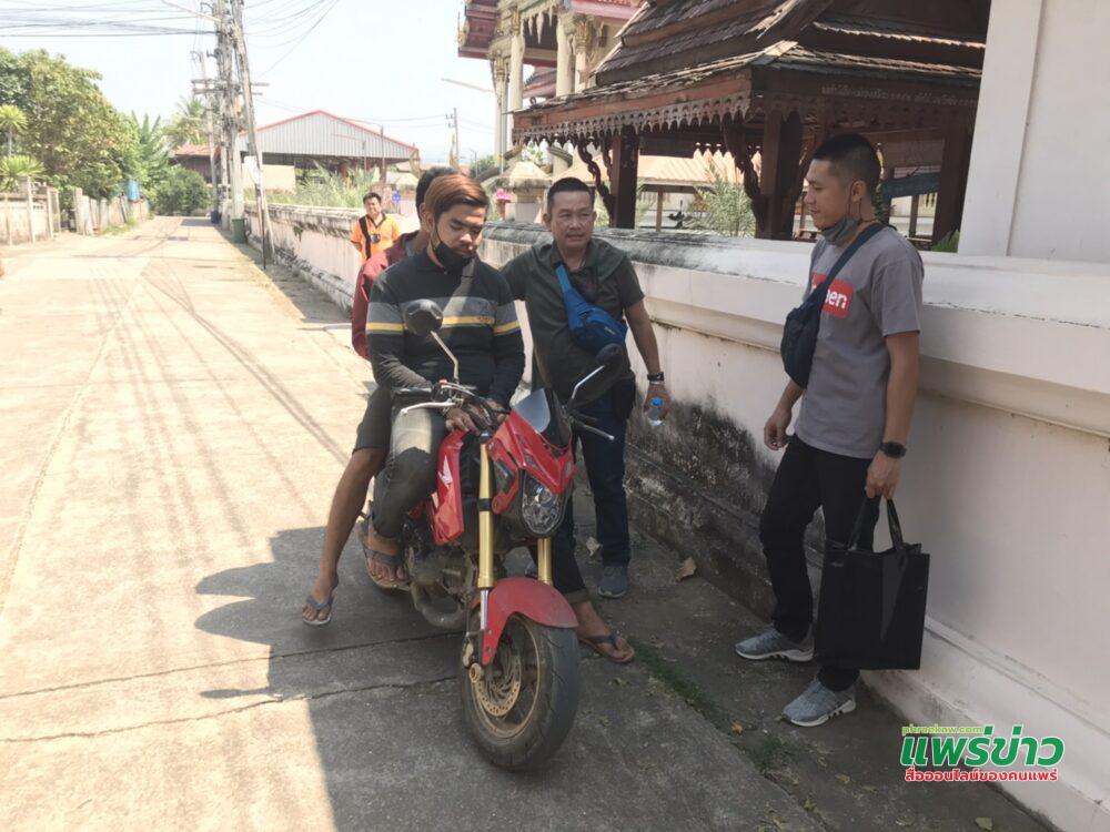หลังจากที่ก่อนหน้านั้น เมื่อเวลา 13.30 น. วันที่ 24 ก.พ.2564 สภ.เมืองแพร่ ได้รับแจ้งเหตุลักทรัพย์ โน้ตบุค และกระเป๋าเงิน ที่วัดนาจักร ม.5 ต.นาจักร อ.เมืองแพร่ ผู้เสียหายคือ สามเณรปกรณ์ แสนย่าง อายุ 17 ปี จนกระทั่งชุดสืบสวน สภ.เมืองแพร่ สืบทราบว่า ผู้ก่อเหตุ คือ นายภูตินันท์ หรือ ปริ้น หวังศิริ และ นายอนุพงษ์ หรือจ๋อย เรืองเกษม จึงได้วางแผนการจับกุม โดยสามารถควบคุมตัวที่ได้ที่หอพักบ้านนาแหลม อ.เมืองแพร่ พร้อมรถ จยย.ยี่ห้อ ฮอนด้า เอ็ม แอส เอ๊กซ์ สีแดง ทะเบียน 1 กข 3517 แพร่ ที่ใช้ก่อเหตุ