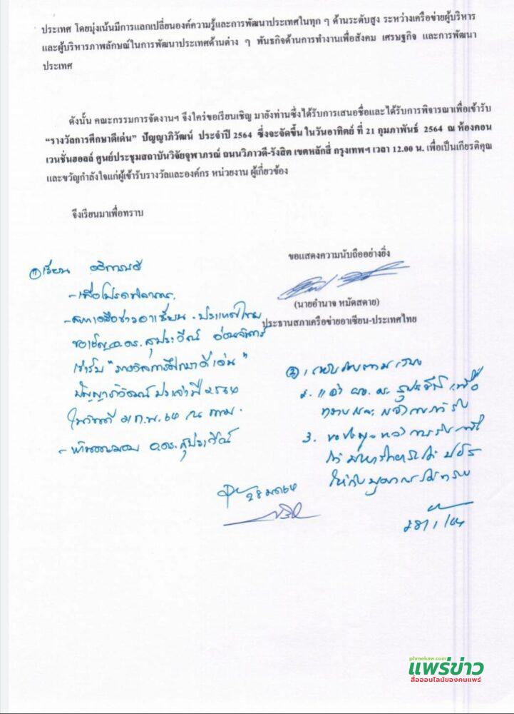 การกระจายโอกาสทางการศึกษาและต้องระดมสรรพกำลังเพื่อจัดการศึกบาให้สอดคล้องกับการเปลี่ยนแปลงด้านเศรษฐกิจ สังคม และวัฒนธรรมอย่างเป็นระบบ เป็นสิ่งที่ผู้ที่เกี่ยวข้องผู้บริหารการศึกษาและสถาบันการศึกษาต่าง ๆ ที่จะต้องตระหนัก ทั้งนี้เพื่อให้สามารถพัฒนาประทศได้อย่างเหมาะสมกับสภาพและความต้องการของประเทศในอนาคต ควบคู่กับการพัฒนาพลเมืองของประเทศโดยเฉพาะในด้านการศึกษาให้เป็นผู้มีปัญญา มีคุณธรรม มีความรู้ความสามารถพื้นฐานหรือมีศักยภาพที่จะพัฒนาตนเองและสังคมต่อไป สามารถประกอบอาชีพหรือเป็นแรงงานสำหรับพัฒนาเศรษฐกิจของประเทศจำเป็นต้องอาศัยกระบวนการศึกษาที่ดี ความก้าวหน้ากับความเจริญก้าวหน้าทางวิทยาการสมัยใหม่ การส่งเสริมพัฒนาศักยภาพทางการศึกษาสู่ความเป็นเลิศในการพัฒนาการศึกษาของไทยให้ก้าวไกลที่สุดโดนเฉพาะในภูมิภาคอาเซียน สภาเครือข่ายอาเซียน-ประเทศไทย เป็นภาคีเครือข่ายขององค์กรที่ไม่แสวงหาธุรกิจกำไรดำเนินการอันเป็นประโยชน์ต่อสังคมไทย ดังนั้น ดร.สุประวีณ์ อ่อนจันทร์ ผอ.ศูนย์วิทยบริการ จ.แพร่ มรภ.อุตรดิตถ์สมควรได้รับ “รางวัลการศึกษาดีเด่น” ปัญญาภิวัฒน์ ประจำปี 2564 สาขา ผู้บริหารด้านการศึกษาท้องถิ่นดีเด่น ด้วยประการทั้งปวง