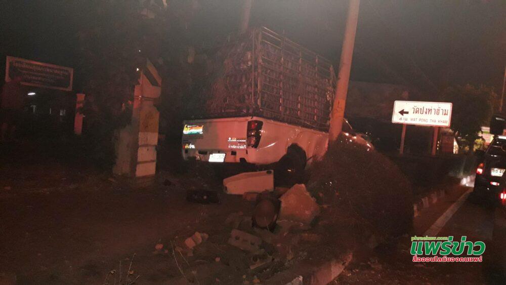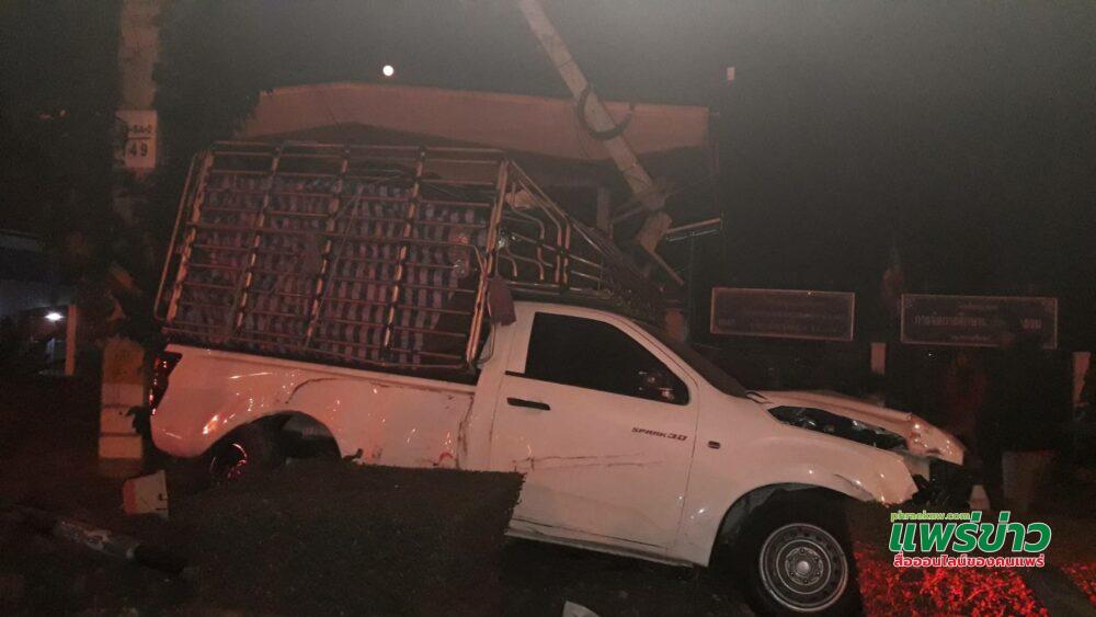 เมื่อไปถึงเกิดเหตุพบรถยนต์กระบะอีซูซุดีแมคซ์ ตอนเดียวสีขาว หมายเลขทะเบียน ผข 1825พิษณุโลก บรรทุกแตงกวาหัวรถพุ่งเสียหลักปีนขึ้นบนฟุตบาท ลอดกลางระหว่างเสาไฟฟ้าแรงสูง กับเสาไฟกิ่ง ด้านข้างซ้ายชนอัดติดกับเสาโทรคมนาคมชนเสาไฟกิ่ง , เสาไฟสัญญาณกระพริบเตือน กระจาย