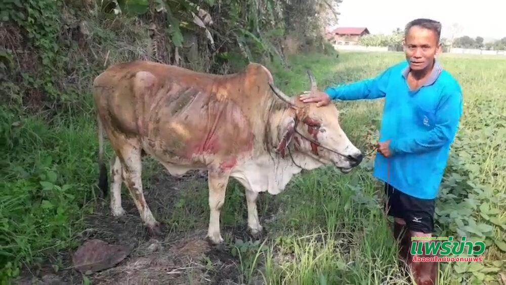 ซึ่งในเวลาต่อมา ทางชาวบ้านได้พบแม่วัว หนีไปซุกพงหญ้าในสวนเพื่อนบ้าน ห่างจากที่เกิดเหตุประมาณ 100 เมตร สภาพถูกไฟลวก เหมือนกับตัวลูกที่เจอก่อนหน้า จึงนำวัวไปรักษาอาการบาดเจ็บจากแผลไฟลวก โดยชาวบ้านนำเอาว่านหางจระเข้ มาตำให้ละเอียด เพื่อทาแผลไฟลวก ตามวิธีการรักษาแผลไฟไหม้ที่ทำกันมาแต่โบราณ และจะรักษาจนหายและเลี้ยงดูให้ดีต่อไป