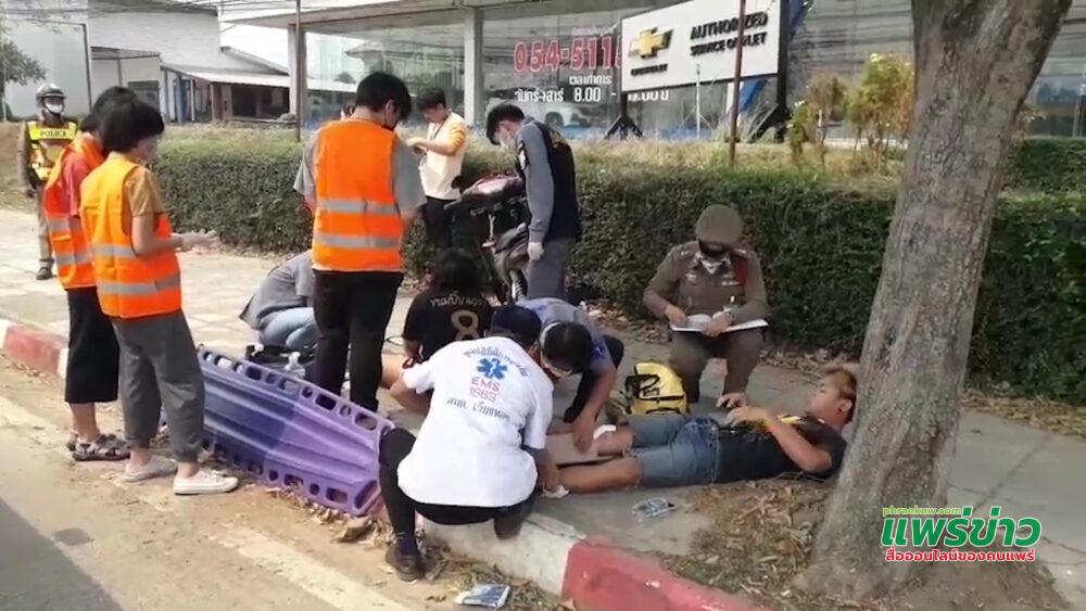 เมื่อเวลา 11.00 น. วันที่ 11 มี.ค.64 พ.ต.ท.พุทธิวัตน์ วงค์ศิริธนดล สารวัตรสอบสวน สภ.สูงเม่น ได้รับแจ้งจากตำรวจสายตรวจตำบลร่องกาศ ว่ามีอุบัติเหตุทางถนน ที่ถนนเลนขาขึ้นหน้าศูนย์รถยนต์มิซูบิชิแพร่ มีผู้บาดเจ็บ หลังรับแจ้งจึงประสานรถกู้ชีพ-กู้ภัยช่วยเหลือผู้ประสบเหตุ