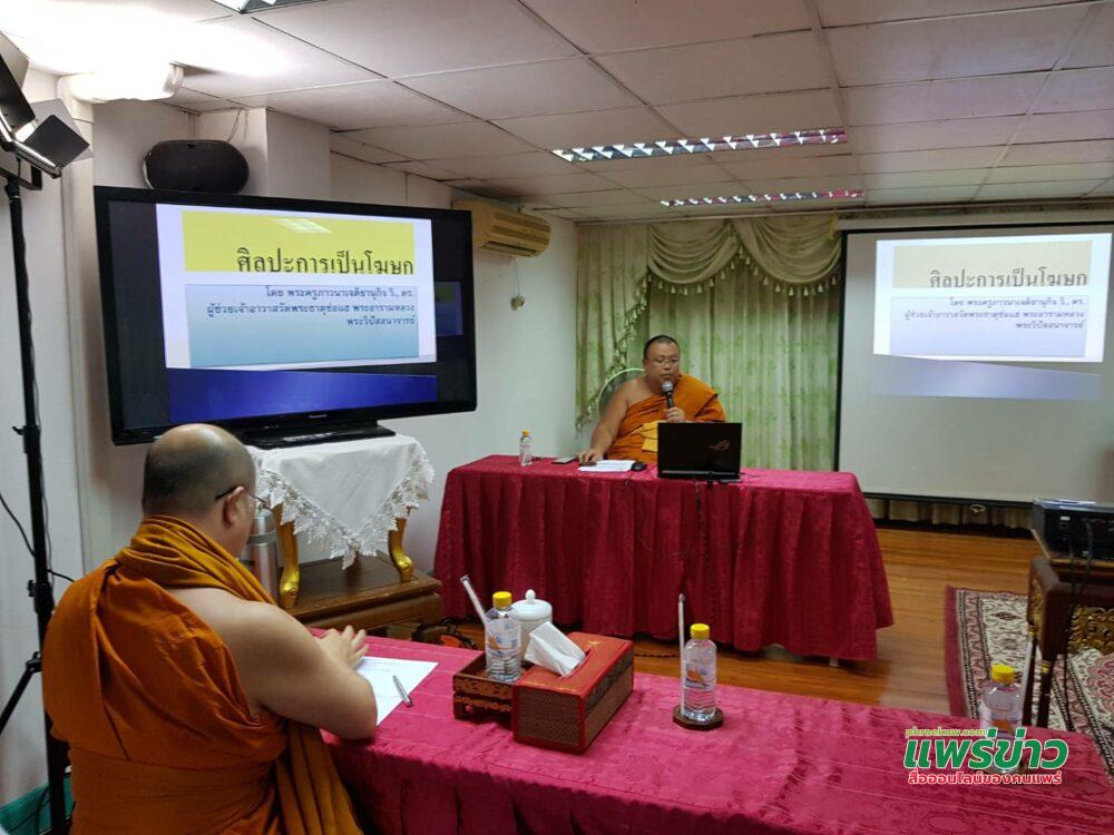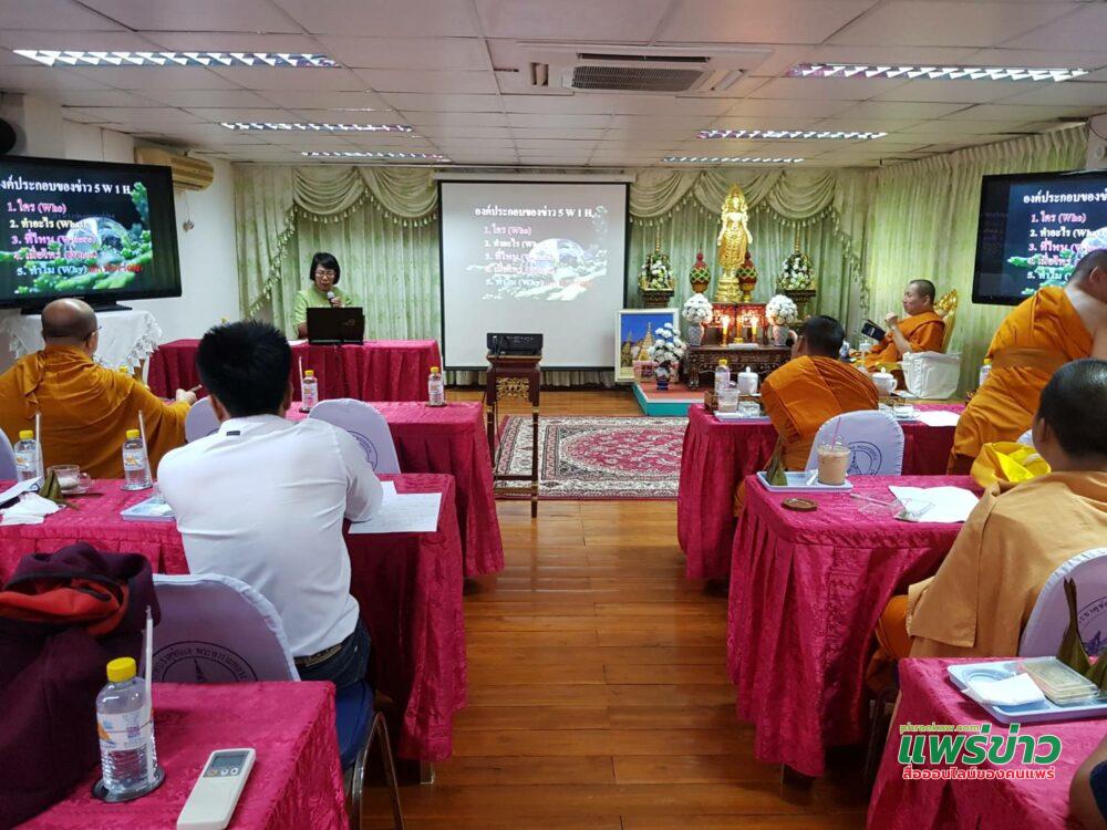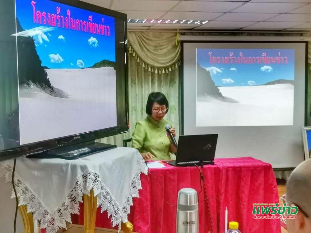 ในการนี้มีพระโกศัยเจติยารักษ์ รองเจ้าคณะจ.แพร่ เป็นประธานเปิดการอบรมและบรรยายพิเศษ และได้เชิญวิทยากรที่มีความรู้ความสามารถมาบรรยาย เช่น พระครูภาวนาเจติยานุกิจ ผู้ช่วยเจ้าอาวาสวัดพระธาตุช่อแฮ รองเจ้าคณะ ต.ป่าแดง เขต 1 บรรยายเรื่อง การเป็นโฆษกที่ดี ร้อยตำรวจโทวรชัย แก้วปัญญา อนุศาสนาจารย์กองกำกับการตำรวจตระเวนชายแดนที่ 33 เชียงใหม่ บรรยายเรื่อง ศิลปะการพูดเพื่อโน้มน้าวใจผู้แสวงบุญและประสบการณ์ในการเป็นโฆษกวัด นางมณี ม่วงทอง ผู้สื่อข่าวนสพ.ไทยรัฐและสื่อออนไลน์ บรรยายเรื่องการเขียนข่าวและฝึกปฏิบัติจริง และมอบเกียรติบัตรผู้ผ่านการอบรม