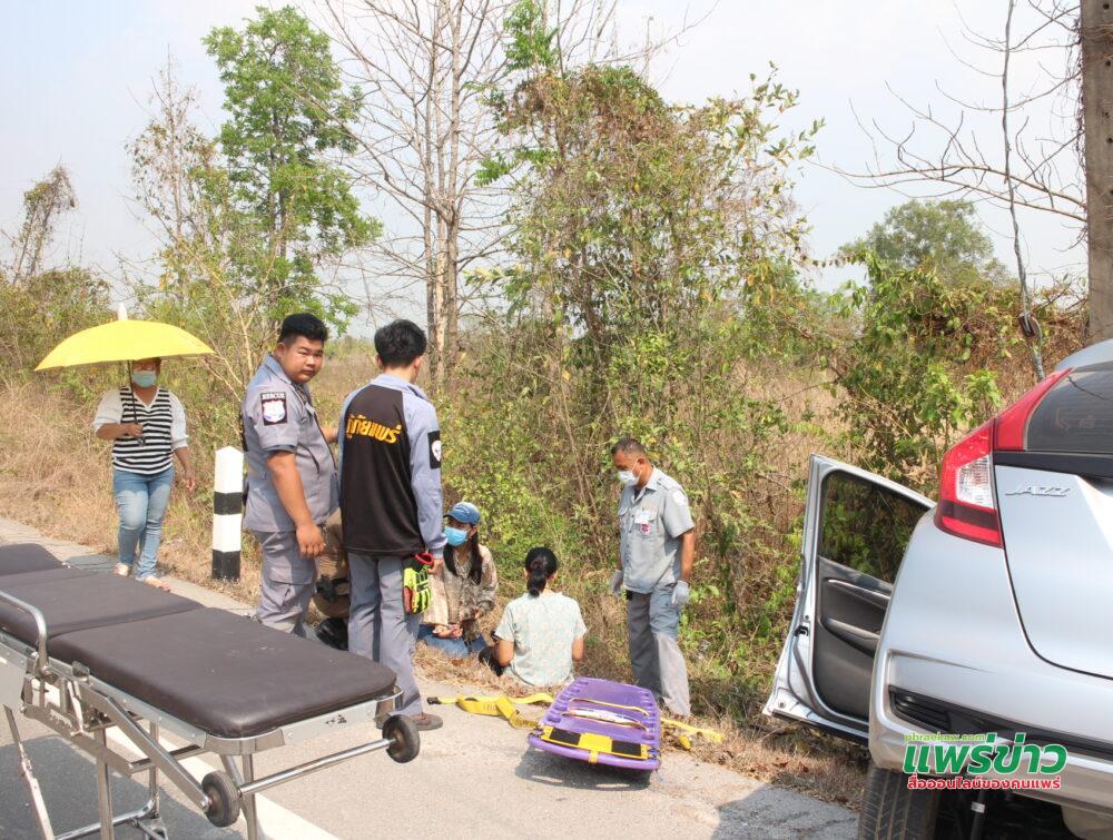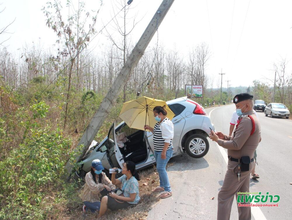 ร.ต.อ.เดชาวัฒน์ เสนาธรรม รองสว.สภ.ห้วยม้า ปฏิบัติหน้าที่พนักงานสอบสวน ประจำ สภ.ห้วยม้า สอบถามผู้บาดเจ็บซึ่งพอให้การได้ ให้การว่า ขับรถมาจากในตัวเมืองแพร่ จะกลับบ้านพักที่บ้านเวียง อ.ร้องกวาง เนื่องจากน้องชายประสบอุบัติเหตุ เข้ารักษาตัวที่โรงพยาบาลในตัวเมืองแพร่ ต้องไปนอนเฝ้าไข้และวันนี้ต้องเดินเรื่องให้น้อง ทำให้เพลีย เมื่อขับรถมาถึงที่เกิดเหตุได้วูบไปมารู้สึกตัวอีกครั้งรถชนเสาไฟฟ้าและมีพลเมืองดีมาช่วยเหลือ ต่อมารถกู้ภัยมาถึงที่เกิดเหตุได้นำผู้บาดเจ็บส่ง รพ.แพร่