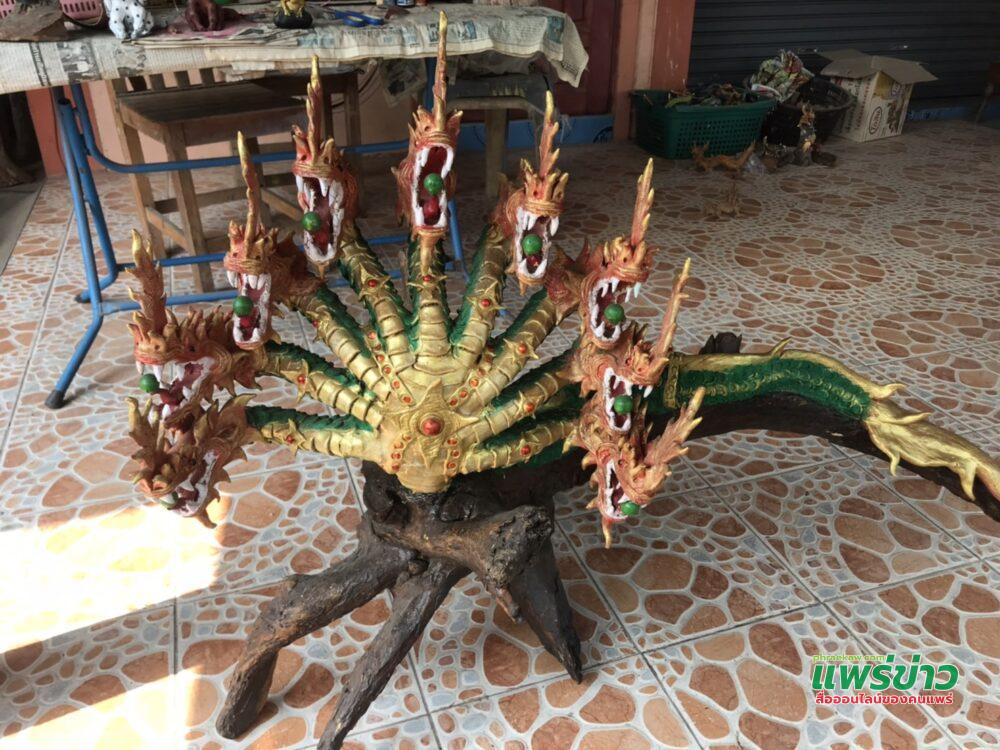 เมื่อกระแสพญานาคกำลังโด่งดัง นายพุทธรักษ์ หรือช่างตี๋ อุตรศรี อายุ 44 ปี บ้านเลขที่ 91 ม.2 ต.แม่ยางฮ้อ อ.ร้องกวาง จ.แพร่ ช่างปั้นงานฝีมือดี จึงได้หันมาปั้น พญานาค ด้วยขี้เลื่อยขายปรากฏว่าขายดีจนปั้นไม่ทันต้องจองกันล่วงหน้า โดยจะรับงานสั่งจากลูกค้า ว่า ลูกค้าต้องการแบบไหน ขนาดเท่าไหร่ ก็จะปั้นตามที่ลูกค้าสั่ง จะสั่งปั้นพญานาค 5 เศียร 7 เศียร หรือ 9 เศียร ก็สามารถ ทำได้และราคาก็จะขึ้นอยู่กับความยาก-ง่ายของงานที่รับมา โดยซื้อขายกันทางออนไลน์ ส่งให้ถึงบ้าน สั่งงานโอนตังค์นั่งยิ้มรอได้เลย
