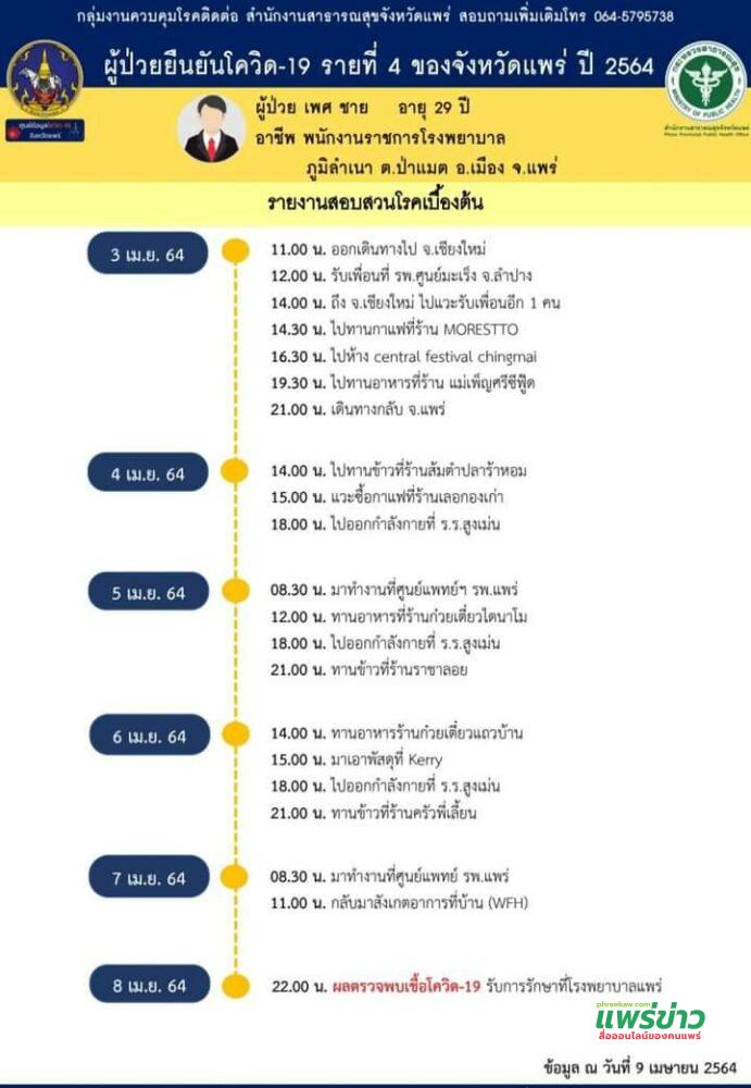 รายที่4เป็นชายวัย 29 ปีชาว ต.ป่าแมต อ.เมืองแพร่ พนักงานราชการร.พ.
