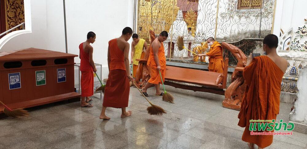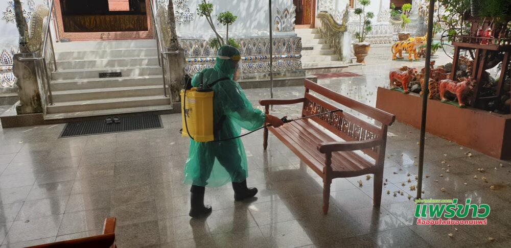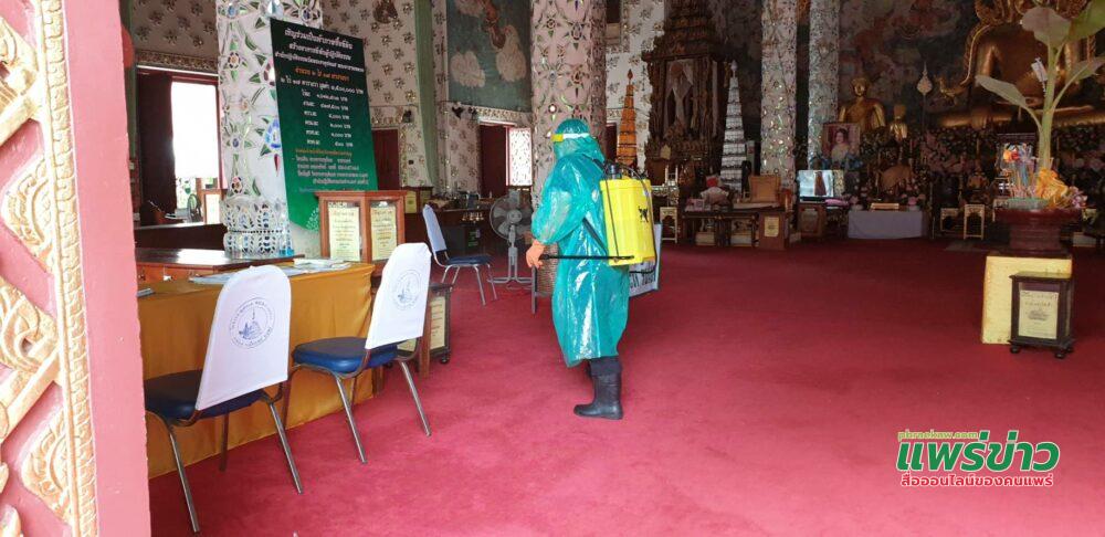 นนี้ที่ 20 เม.ย. 64 เวลา 09.00 น. พระโกศัยเจติยารักษ์ รองเจ้าคณะจ.แพร่ เจ้าอาวาสวัดพระธาตุช่อแฮ พระอารามหลวง นำคณะพระภิกษุ สามเณร เจ้าหน้าที่วัดพระธาตุช่อแฮ ได้ช่วยกันทำความสะอาด พ่นน้ำยาฆ่าเชื้อบริเวณวัดทุกจุด เช่นในพระอุโบสถ ลานองค์พระธาตุช่อแฮ บันไดขึ้นพระธาตุ โต๊ะเก้าอี้ ฯลฯ ทุก 2 วัน เริ่มทำความสะอาดมาตั้งแต่วันที่ 18 เม.ย.64 ทั้งนี้เพื่อความปลอดภัยของนักท่องเที่ยวและพุทธศาสนิกชนที่มานมัสการองค์พระธาตุช่อแฮ และรองรับการเปิดวัดในวันที่ 1 พ.ค.64 หากสถานการณ์ดีขึ้น ยอดผู้ติดเชื้อลดลง