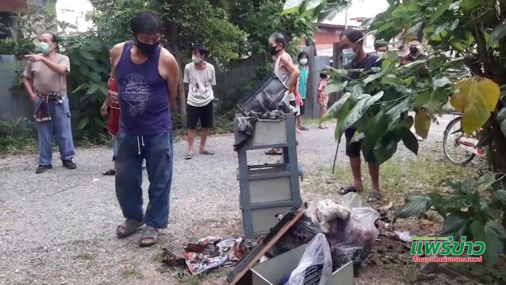 ตรวจที่เกิดเหตุ พบชาวบ้าน และนางแสงอารมณ์ แสงทอง อายุ 62 ปี เจ้าของบ้านที่รีบกลับจากขายของในตลาดสบสาย มาที่บ้าน มีอาการตกใจ สอบถาม ด.ช.แสงศีล แสงทอง (น้องปลื้ม) อายุ 12 ปี เป็นหลานเจ้าของบ้านให้การว่า ได้เข้าห้องน้ำอยู่บนบ้าน มีคนตะโกนบอกว่าไฟไหม้ จากรถเก็บขยะที่มาเก็บขยะที่เห็นเหตุการณ์ ชาวบ้านและคนเก็บขยะจึงมาช่วยกันดับไฟโดยตักน้ำจากโอ่งข้างบันไดบ้านมาช่วยดับไฟ และรถดับเพลิง อบต.สบสาย มาทัน จึงช่วยฉีดน้ำ ทำให้รอดจากเพลิงไหม้หวุดหวิด
