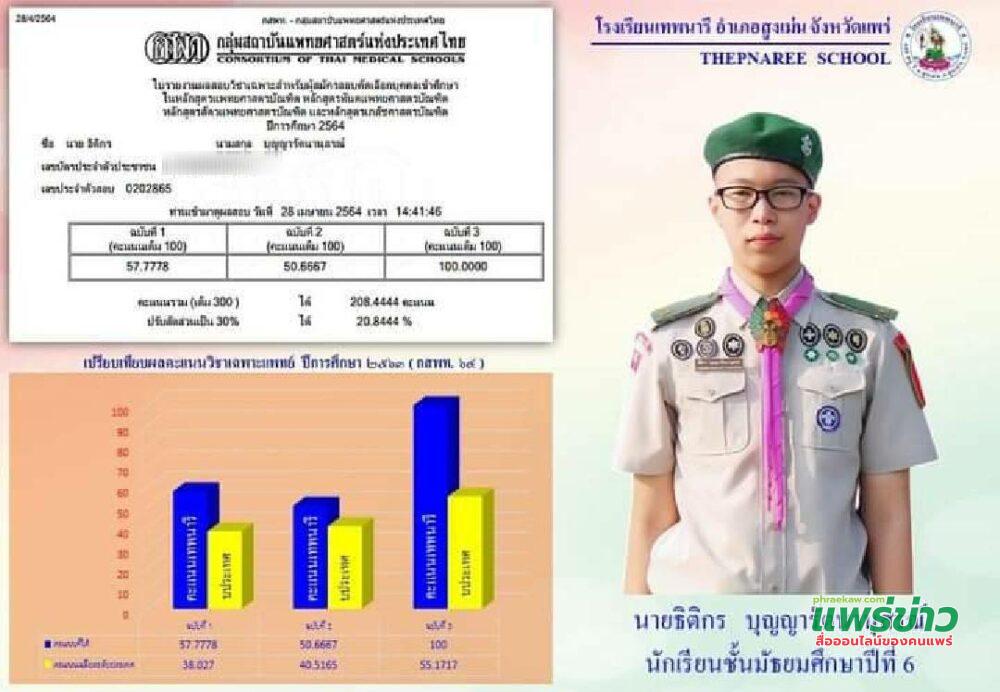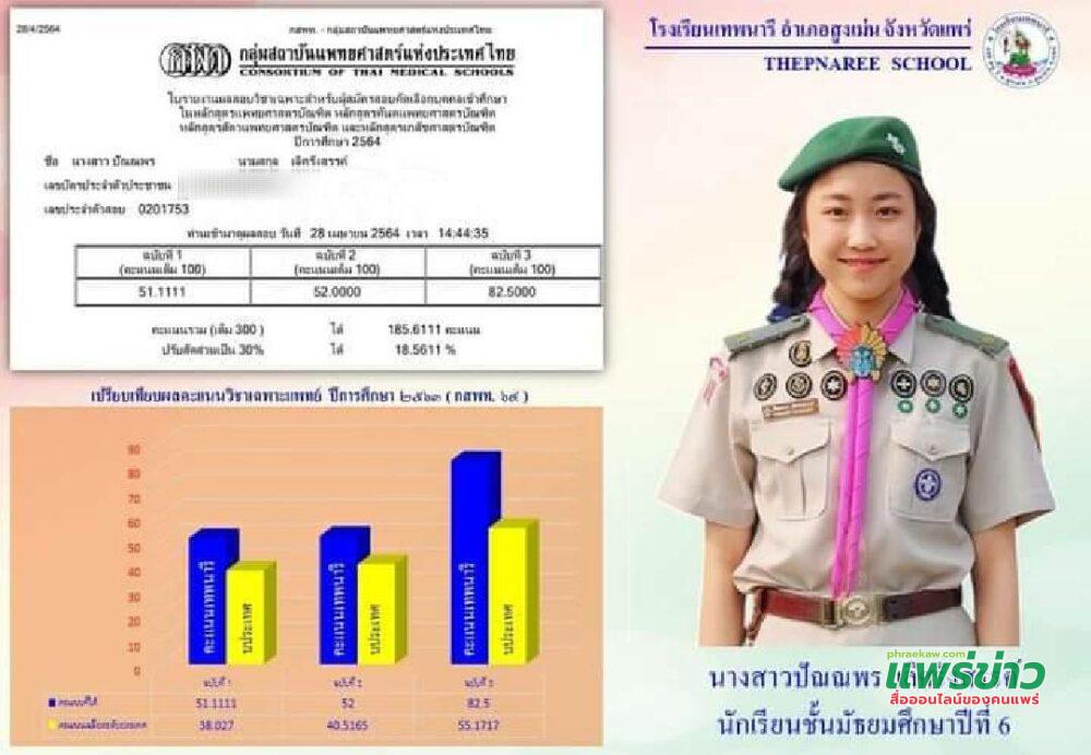 โดยนักเรียนชั้น ม.6โรงเรียนเทพนารี สามารถทำคะแนน ได้ดี จำนวน 3 คน คือ นายธิติกร บุญญารัตนานุสรณ์ ฉบับ 1 ได้ 57.7778 ฉบับที่ 2 ได้ 80.6667 ฉบับที่ 1000 รวม 208.4444 คะแนน น.ส.ปัณณพร เลิศรังสรรค์ ฉบับที่ 1ได้ 51.1111 ฉบับที่2ได้ 52.0000 ฉบับที่ 3 ได้ 82.5000 รวม185.5611 คะแนน และ น.ส.ปานชนก คำป้อ ฉบับที่ ได้ 44.4444 ฮบับที่ 2 ได้ 46.6667 ฉบับที่ 3 ได้ 46.5000 รวม 137.1111คะแนน ซึ่งนักเรียนจะใช้ผลสอบนี้ประกอบการสมัครเข้าศึกษาคณะแพทยศาสตร์ในระบบ TCAS รอบที่ 3 ต่อไป.