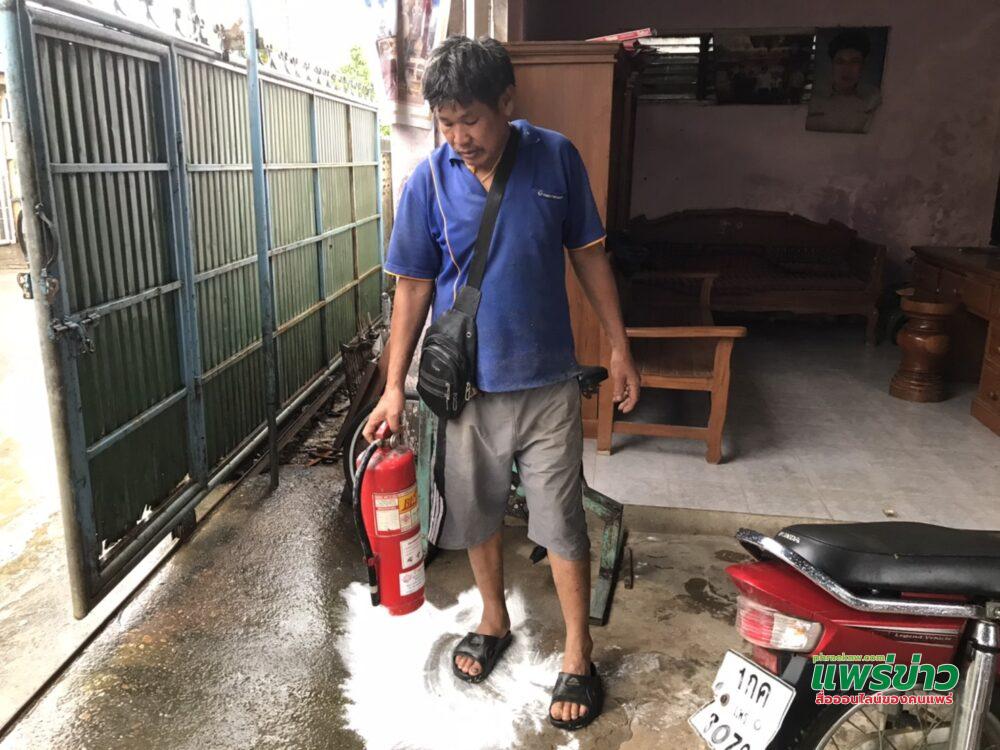 ทางด้าน นายชัยวุฒิ สมบัติ อายุ 59 ปี บ้านเลขที่ 212/3 ม.7 ดอนแท่น ต.ดอนมูล เป็น ส.อบต.หมู่ 7 และเป็นญาติกับผู้เสียหาย บ้านอยู่หน้าปากซอยได้ยิน คนตะโกนว่า ไฟไหม้ๆๆ จึงวิ่งออกจากบ้านไปเอาถังดับเพลิงที่ร้านค้าตรงข้ามบ้าน ที่ตนเองประสาน อบต.ดอนมูล นำมาติดตั้งจุดต่างๆ ในหมู่บ้าน แล้ววิ่งไป ช่วยฉีดด้วยน้ำยาเคมี ไฟจึงดับลงได้ ไม่ลุกลาม โดยระหว่างที่ถือถังดับเพลิงวิ่งเข้ามา เห็นเพื่อนบ้านใช้น้ำดับ ซึ้งไฟไหม้น้ำมัน เมื่อเอาน้ำดับ ไฟก็ยิ่งโหมลุก ไม่ดับสักที หากตนไม่ได้สติเอาถังดับเพลิงมาดับ อาจจะลุกลามใหญ่โตก็เป็นได้.