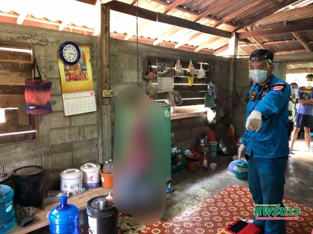 เวลา 09.30 น. วันที่ 29 เม.ย.64 พ.ต.ท.ภัทราวุธ แจ้งอำพันธ์ สารวัตรสอบสวน ทำหน้าที่พนักงานสอบสวนเวร สภ.ร้องกวาง รับแจ้งเหตุมีคนผูกคอตาย ที่บ้านหมู่ 2 ต.แม่ยางร้อง อ.ร้องกวาง จ.แพร่ จึงประสานหน่วยกู้ภัยพรานพิทักษ์ จุด อ.ร้องกวาง และรุดไปตรวจสอบตามที่ได้รับแจ้ง
