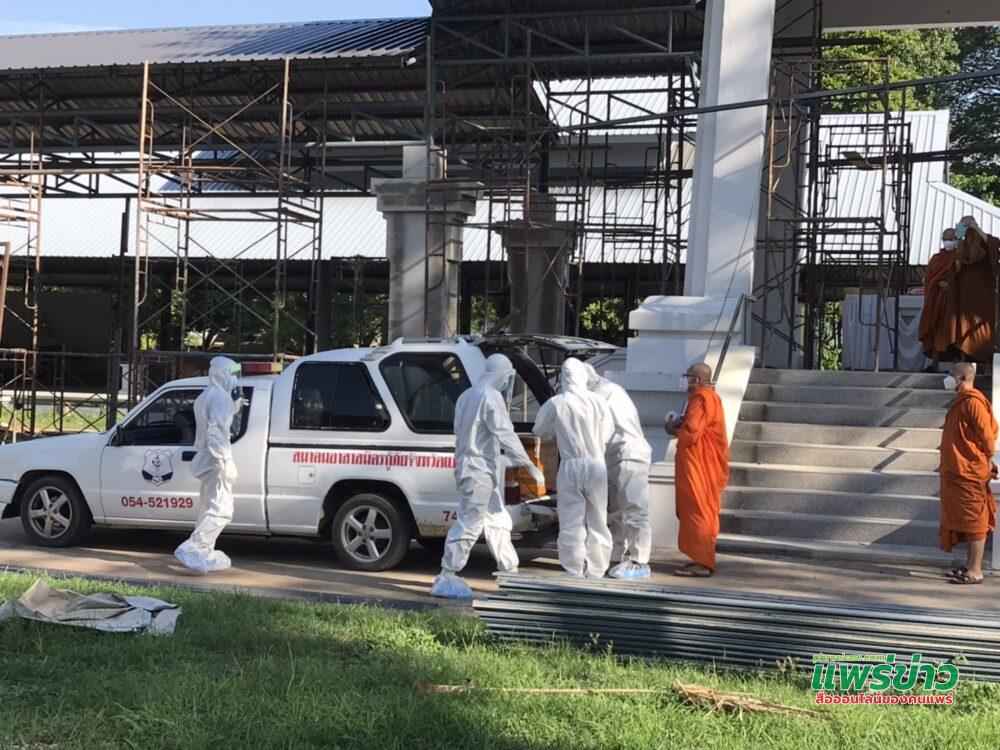 ผู้สื่อข่าวรายงานว่าเมื่อเวลา 16.30 น.ลูกหลานคุณยายวัย 85 แม่เฒ่าสม (ขอสงวนนามสกุล) ได้มี ลูกชาย และหลานชายอีก 3 คนได้นำศพคุณยายมาทำการฌาปนกิจศพที่ฌาปนสถานประตูมาน โดยมี หน่วยกู้ภัยแพร่นำศพบรรจุถุงซิฟอย่างแน่นหนา เจ้าหน้าที่กู้ภัยก็สวมชุดอย่างมิดชิด และมีพระภิกษุจากวัดพระร่วง 4 รูปมาทำพิธีประกอบทางศาสนา ทั้งลูกหลานที่มาร่วมงานศพต่างก็อยู่ในอาการโศกเศร้าเสียใจที่ไม่สามารถนำศพคุณยายกลับไปฌานปกิจศพที่บ้านวังหลวงบ้านเกิดได้ และศพคุณยายนับว่าเป็นศพแรกของจ.แพร่ที่เสียชีวิตด้วยโรคโควิด 19