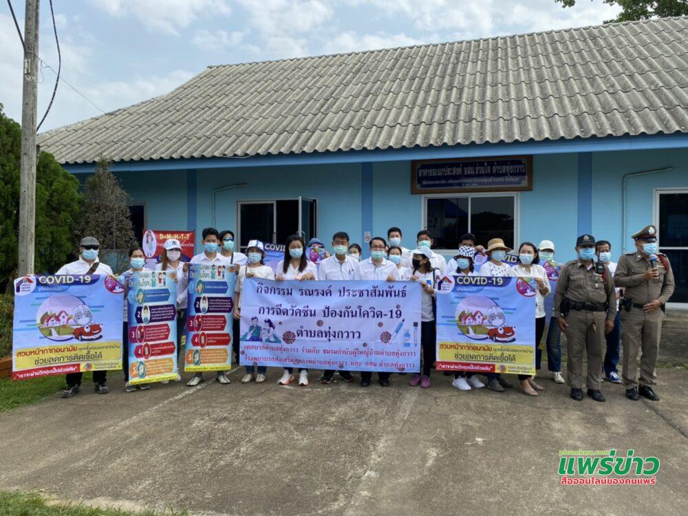เมื่อวันที่ 19 พฤษภาคม 2564 เวลา 08.30 น. ที่ รพ.สต.ทุ่งกวาว อ.เมือง จ.แพร่นายสมศักดิ์ สุขประเสริฐ นายอำเภอเมืองแพร่ เป็นประธานในพิธีปล่อยขบวนรณรงค์ให้ประชาชนใน ต.ทุ่งกวาว ฉีดวัคซีนป้องกันโรคโควิด- 19