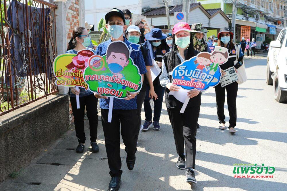 เมื่อวันที่ 21 พฤษภาคม 2564 เวลา 09.00 น. และเวลา 13.00 น. นายเจตนิพิฐ หล้าประเสริฐ ปลัดเทศบาล ปฏิบัติหน้าที่นายกเทศมนตรีเมืองแพร่ มอบหมายให้นายเอกชัย เพรชพราว รองปลัดเทศบาลเมืองแพร่ นำพนักงานเทศบาล เจ้าหน้าที่กองสาธารณสุขและสิ่งแวดล้อม เจ้าหน้าที่ศูนย์สุขภาพชุมชนเขตเมืองโรงพยาบาลแพร่ (ร่องซ้อ) แกนนำส่งเสริมสุขภาพชุมชน อสม.และเจ้าหน้าที่ที่เกี่ยวข้อง
