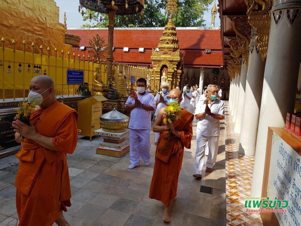 วันนี้ 26 พ.ค.64 เวลา 06.00 น. ที่วัดพระธาตุช่อแฮ พระอารามหลวง จ.แพร่ พระโกศัยเจติยารักษ์ รองเจ้าคณะจ.แพร่ เจ้าอาวาสวัดพระธาตุช่อแฮฯ ได้จัดกิจกรรม วันวิสาขบูชา ซึ่งเป็นวันสำคัญทางพุทธศาสนา คือ เป็นวันประสูติ ตรัสรู้ และปรินิพพานของพระสัมมาสัมพุทธเจ้า ปกติทางวัดพระธาตุช่อแฮฯได้จัดกิจกรรมสำคัญในวันวิสาขบูชาทุกปี แต่เนื่องจากการแพร่ระบาดของโรคโควิด-19 ทางวัดกิจกรรมดังกล่าวโดยการถ่ายทอดสดในช่องทางเพจวัดพระธาตุช่อแฮ พระอารามหลวงและช่องยูทู ตามแนววิถีใหม่ (New normal)