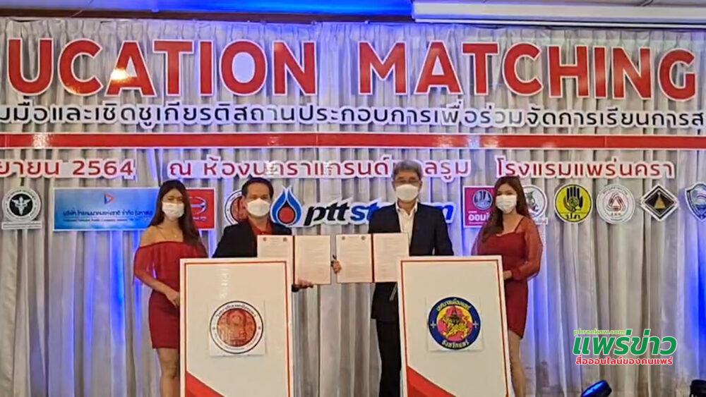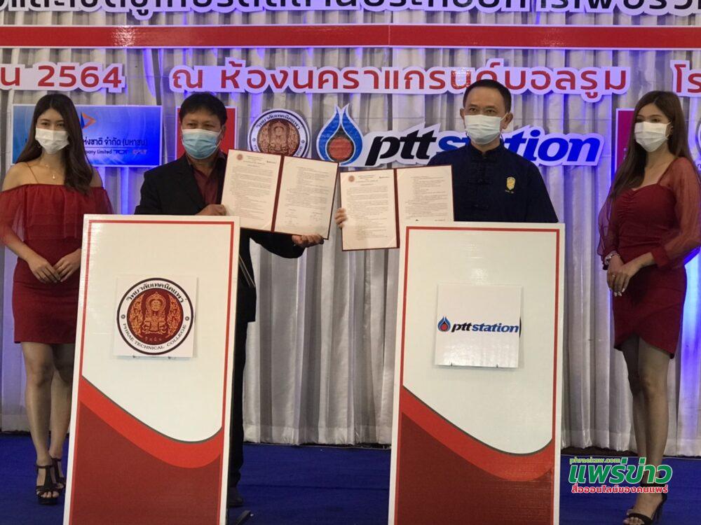 จากนั้นมีพิธี ลงนามบันทึกข้อตกลงความร่วมมือ ประกอบด้วย แผนกวิชาช่างยนต์ ร่วมกับ บริษัท เอ ปิโตเลียม จำกัด แผนกวิชาเครื่องกลอุตสาหกรรม ร่วมกับ ห้างหุ้นส่วนจำกัด เชียงแสงลำปาง (สาขาแพร่) แผนกวิชาเครื่องมือกล ร่วมกับ กลุ่มวิสาหกิจชุมชนเทคโนโลยีงานไม้จังหวัดแพร่ แผนกวิชาไฟฟ้ากำลัง ร่วมกับ การไฟฟ้าส่วนภูมิภาคจังหวัดแพร่ แผนกวิชาโครงสร้าง ร่วมกับ ร้านพัฒนะการช่าง แผนกวิชาสำรวจ ร่วมกับ เทศบาลตำบลป่าแมต แผนกวิชาก่อสร้าง ร่วมกับ เทศบาลเมืองแพร่ แผนกวิชาสถาปัตยกรรม ร่วมกับ ห้างหุ้นส่วนจำกัด สุธาสิริการโยธา แผนกวิชาคอมพิวเตอร์ซอฟต์แวร์ ร่วมกับ บริษัท โทรคมนาคมแห่งชาติ จำกัด (มหาชน)