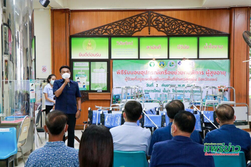 โดยมี นางสาวสุรีย์ ทาประเสริฐ เลขานุการนายกองค์การบริหารส่วนจังหวัดแพร่, นายวิตติ แสงสุพรรณ ประธานสภาองค์การบริหารส่วนจังหวัดแพร่, ว่าที่ ร.ต.ศุภชัย ทานะขันธ์ ปลัดองค์การบริหารส่วนจังหวัดแพร่ พร้อมด้วย หัวหน้าส่วนราชการ, สมาชิกสภาองค์การบริหารส่วนจังหวัดแพร่ พื้นที่อำเภอสูงเม่น และเจ้าหน้าที่จากองค์การบริหารส่วนจังหวัดแพร่ ร่วมมอบอุปกรณ์ให้กับผู้ป่วยในพื้นที่อำเภอสูงเม่น จำนวน 54 ราย รวมงบประมาณ 269,140 บาท ณ โรงพยาบาลสูงเม่น อำเภอสูงเม่น จังหวัดแพร่