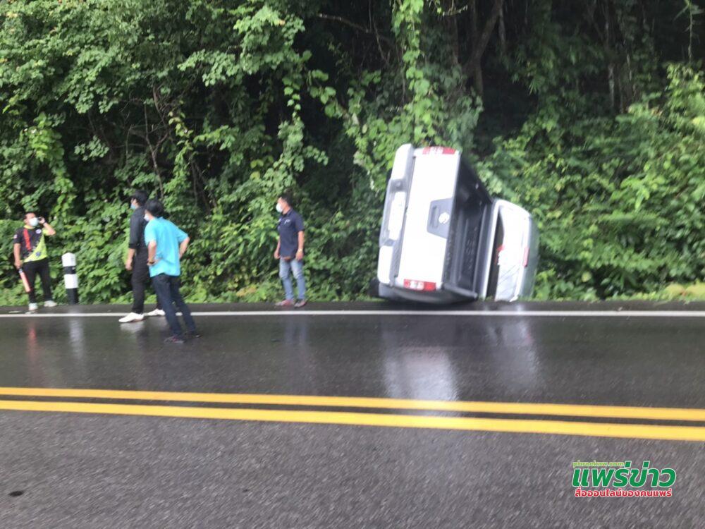 เมื่อเวลา 11.00 น. วันที่ 4 ก.ย.64 ที่ถนนสายแพร่-ลอง กม. ที่ 11-12 ต.ป่าแมต อ.เมืองแพร่ จ.แพร่ ซึ่งเป็นถนนขึ้นเขาที่คดเคี้ยว อันตราย โดยเฉพาะเมื่อฝนตก เกิดอุบัติเหตุรถกระบะนิสสัน นาวาร่า แค็ป สีบอร์นเทา ทะเบียน ฒช 2650 กรุงเทพมหานคร เสียหลักชนเขา พลิกตะแคงข้าง คนขับเป็นชายสูงอายุ ได้รับบาดเจ็บที่บริเวณใบหน้า คิว จมูก ปากแตกเป็นแผลฉกรรจ์ และมีอาการจุกหน้าอกหายใจไม่ออก พลเมืองที่ประสบเหตุ นำส่ง รพ.แพร่ ตำรวจสายตรวจ ต.ป่าแมต และ กู้ชีพ-กู้ภัยเทศบาลตำบลป่าแมต ออกเหตุ และให้สัญญาณจราจรในที่เกิดเหตุ ป้องกันอุบัติเหตุซ้ำซ้อน