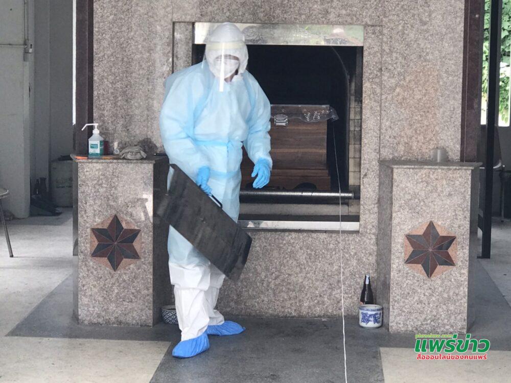 เมื่อเวลา 11.00 วันที่ 16 ก.ย.64 ที่ฌาปนสถานประตูมาน ต.ในเวียง อ.เมืองแพร่ จ.แพร่ หน่วยกู้ภัยนำร่าง ผู้หญิง อายุ 45 ปี ชาว อ.เด่นชัย หลังจากที่มารักษาตัวที่ รพ.แพร่ เพราะเป็นโรคประจำตัวคือ หืดหอบ และโรคหัวใจได้ 3วันก็เสียชีวิตเมื่อนำร่างไปตรวจ พบว่า ติดเชื้อโควิด-19 จึงได้กักตัวสามี ที่เฝ้าไข้ แล้วนำร่างมาทำการฌาปณกิจ โดยมีพระสงฆ์ 4 รูป มาสวดบังสุกุล โดยมีญาติเพียง 2 คน คือ พ่อตา และหลานมาร่วมงานศพเพียงเท่านั้น หลังเสร็จพิธีทางศาสนาได้ทำการฌาปนกิจทันที