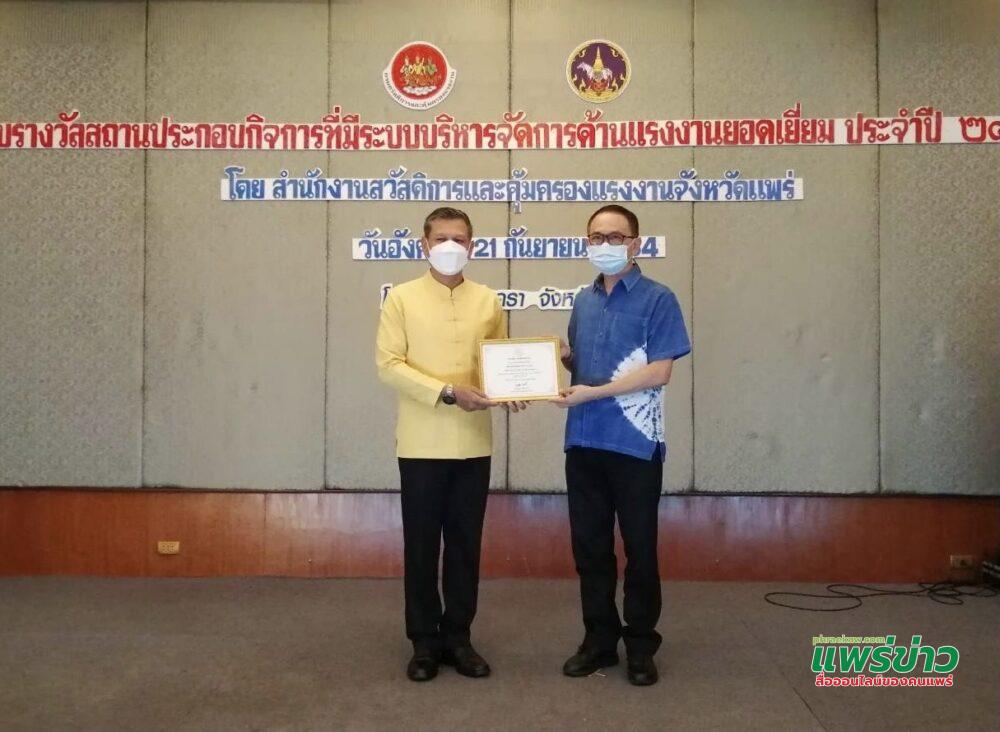 นายเอกชัย วงศ์วรกุล กรรมการผู้จัดการบริษัทเอปิโตรเลียมจำกัด รับใบประกาศเกียรติคุณสถานประกอบการที่นำแนวปฎิบัติการใช้แรงงานที่ดีไปใช้ในการบริการกิจการ(GLP) ของสำนักงานสวัสดิการและคุ้มครองแรงงานจังหวัดแพร่ จากนายวรญาน บุญณราช รองผู้ว่าราชการจังหวัดแพร่ ณ โรงแรมแพร่นครา เมื่อวันที่ 21 กันยายน 2564 ที่ผ่านมา