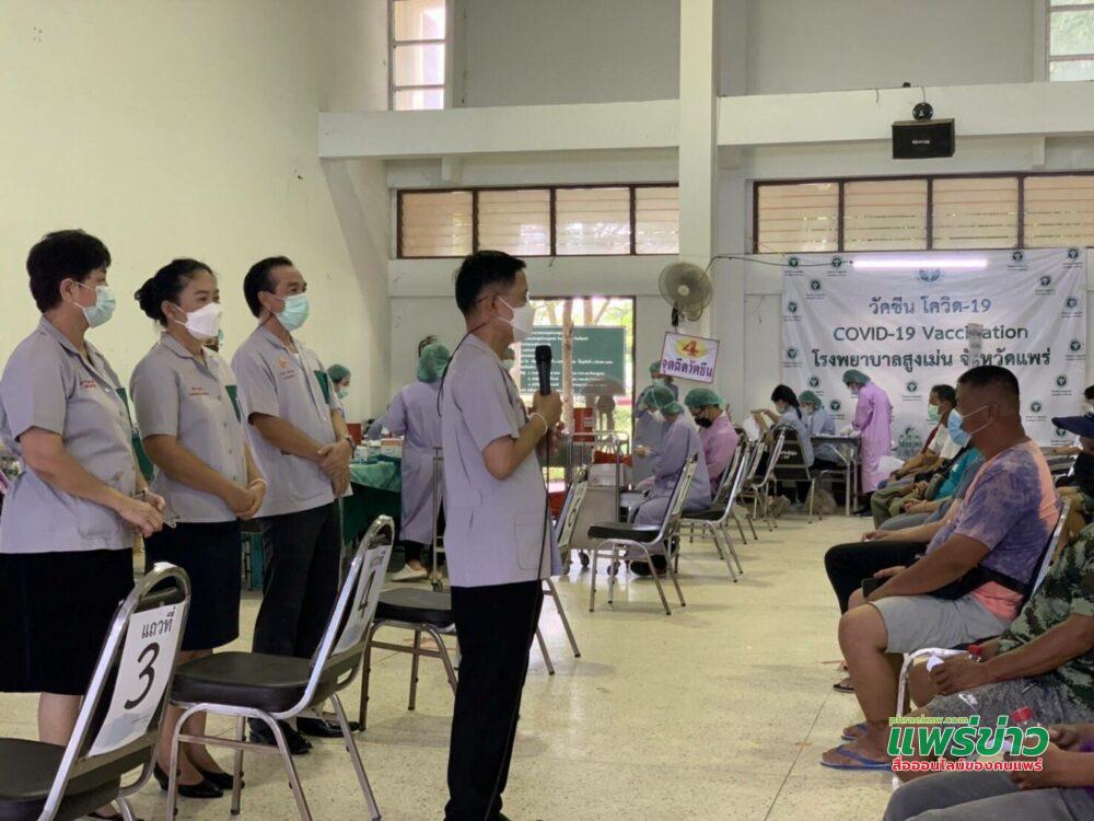 เมื่อวันที 24 กันยายน 2564 เวลา 08.30- 16.30 น. นายศิวัช ฟูบินทร์ นายอำเภอสูงเม่น จ.แพร่/หัวหน้าศูนย์ปฏิบัติการกลางฉีดวัคซีนโควิด-19 มอบหมายให้ นายแพทย์แสงชัย พงศ์พิชญ์พิทักษ์ ผู้อำนวยการโรงพยาบาลสูงเม่น นายศราวุธ นันทวรรณ สาธารณสุขอำเภอสูงเม่น บุคลากรทางการแพทย์ อสม. ตำรวจจิตอาสา สภ.สูงเม่น ออกหน่วย พอ.สว. อสม.รพ.สต.น้ำชำ รพ.สต.ร่องกาศ ให้บริการฉีดวัคซีนป้องกัน covid-19 จำนวน 2 จุด คือ จุดที่ 1 หอประชุม อำเภอสูงเม่น จุดที่ 2 หอประชุม อบต.ร่องกาศ