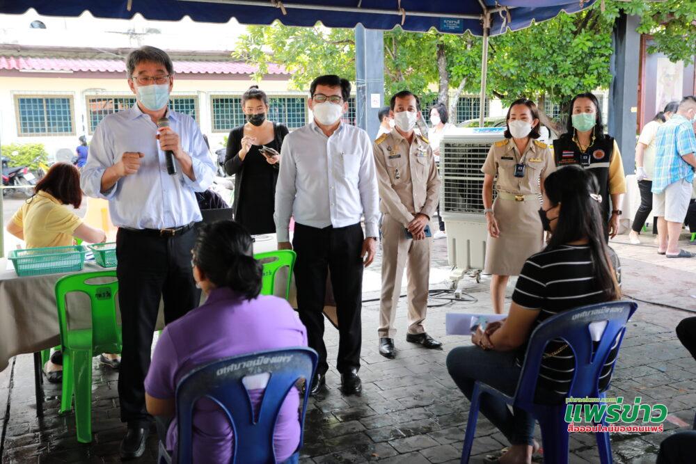พร้อมทั้งให้กำลังใจแก่เจ้าหน้าที่ผู้ปฏิบัติงาน และขอขอบคุณคณะทีมแพทย์ พยาบาลและเจ้าหน้าที่จากโรงพยาบาลแพร่ เจ้าหน้าที่จากกองสาธารณสุขและสิ่งแวดล้อม เจ้าหน้าที่จากศูนย์แพทย์ร่องซ้อ (รพ.แพร่) และผู้ที่เกี่ยวข้องในการให้บริการฉีดวัคซีนดังกล่าว