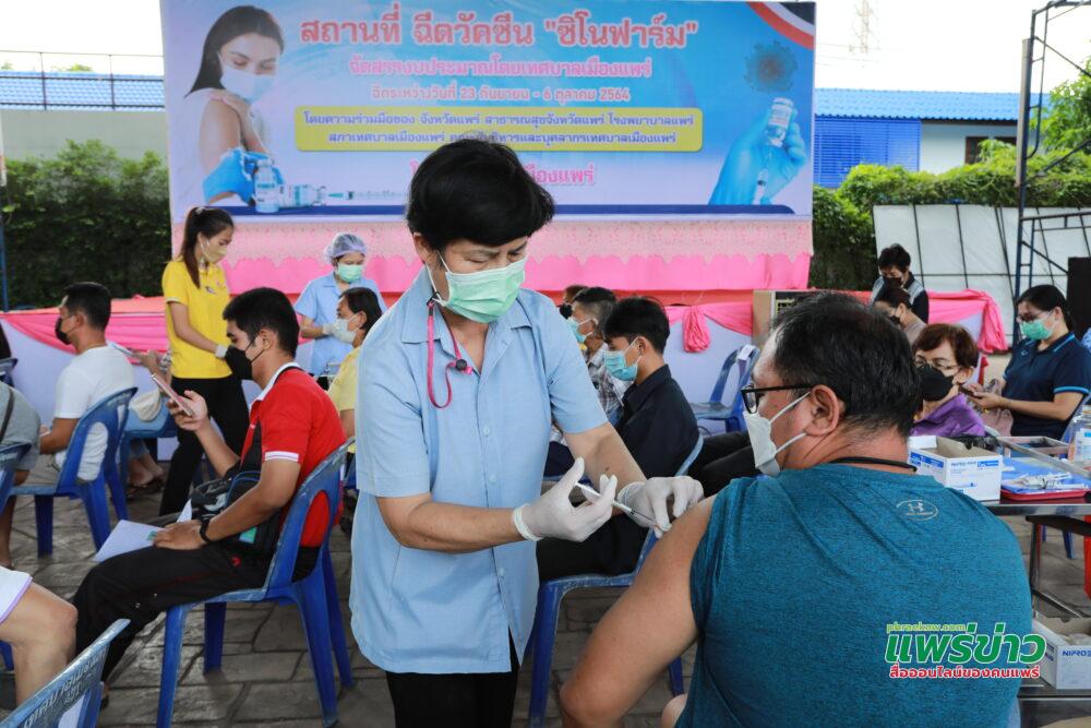 โดยมีนายโชคชัย พนมขวัญ นายกเทศมนตรีเมืองแพร่ พร้อมด้วยคณะผู้บริหาร สมาชิกสภาเทศบาลเมืองแพร่ ปลัดเทศบาลเมืองแพร่ รองปลัดเทศบาลเมืองแพร่ ผู้อำนวยการกอง หัวหน้าสำนักปลัดเทศบาล ผู้อำนวยการโรงพยาบาลแพร่ ร่วมลงพื้นที่พบปะพี่น้องประชาชนและให้ข้อควรปฏิบัติในการรับบริการฉีดวัคซีนป้องกันโควิด-19