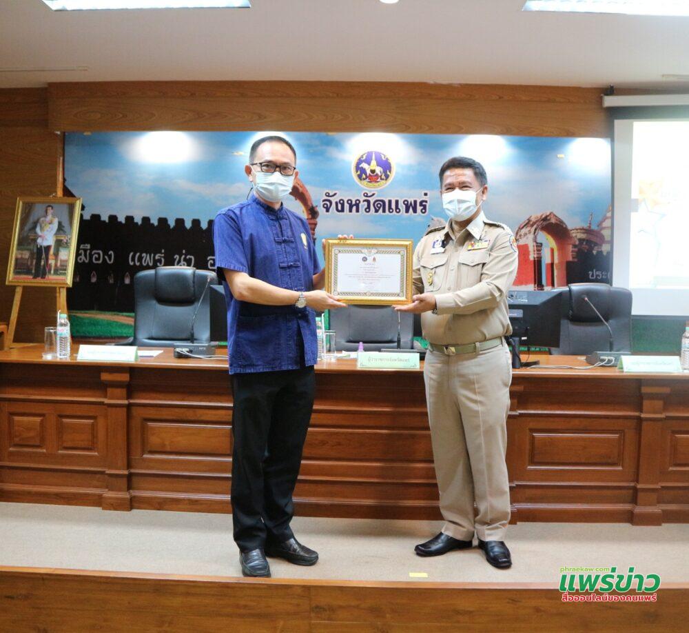 วันที่ 28 กันยายน 2564 เวลา 09.30 น. นายเอกชัย วงศ์วรกุล ประธานสภาวัฒนธรรมจังหวัดเเพร่ พร้อมด้วยหน่วยหัวหน้าส่วนราชการภาครัฐเเละภาคเอกชน ร่วมรับมอบเกียรติบัตร องค์กร คุณธรรมต้นแบบ ตามโครงการขับเคลื่อนแผนแม่บทส่งเสริมคุณธรรมแห่งชาติ ฉบับที่ 1 (พ.ศ.2559-พ.ศ.2564) ประจำปีงบประมาณ พ.ศ.2564 ในการประชุมคณะกรรมการจังหวัดเเพร่ หัวหน้าส่วนราชการเเละหน่วยงานที่เกี่ยวข้อง ครั้งที่ 9/2564 โดย นายสมหวัง พ่วงบางโพ ผู้ว่าราชการจังหวัดเเพร่ เป็นประธานฯ ณ ห้องประชุมจดหมายเหตุ ชั้น 2 ศาลากลางจังหวัดเเพร่