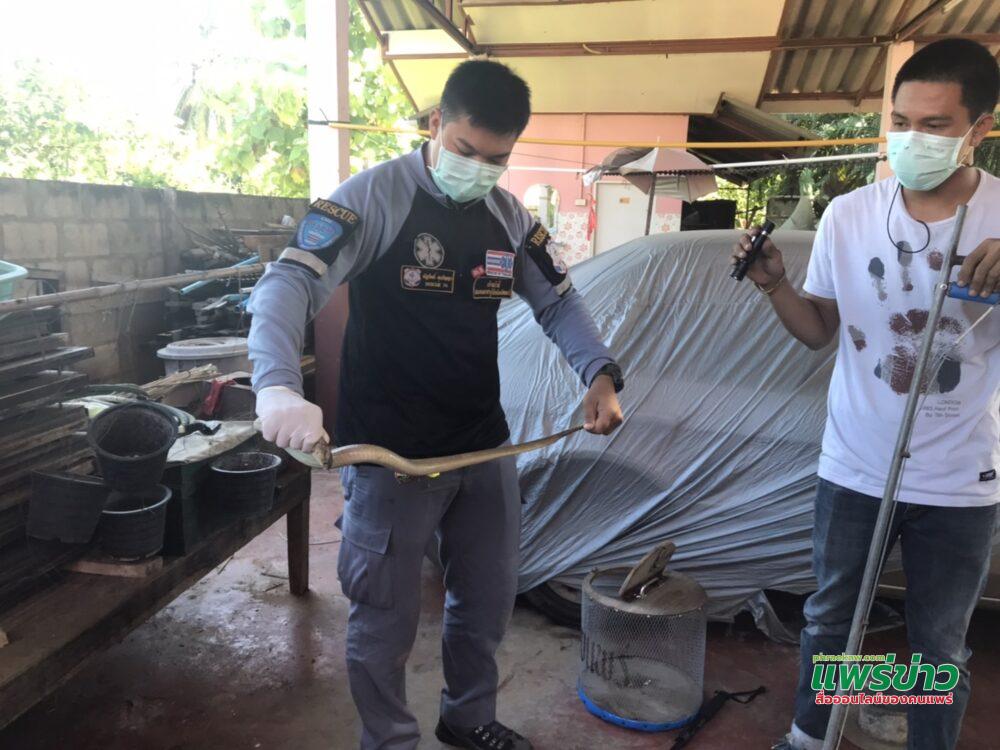 เมื่อเวลา 11.30 น. วันที่ 29 ก.ย.64 ศูนย์วิทยุ สภ.เมืองแพร่ ได้รับแจ้งจาก 191 ขอความช่วยเหลือสัตว์มีพิษเข้าบ้านที่บ้านร่องฟอง ต.ร่องฟอง อ.เมืองแพร่ จ.แพร่ บ้านอยู่หลังตลาดสดร่องฟอง เข้าข้างลำเหมืองซอย ขณะนี้เจ้าของบ้านได้เฝ้าจับตารออยู่ เพื่อไม่ให้มันหนีไปก่อน จึงประสานอาสาสมัครหน่วยกู้ภัยแพร่ นำโดย นายพิษณุ ดวงตาดำ หัวหน้าชุดปฏิบัติการพร้อมอาสาสมัครกู้ภัยแพร่ รวม 5 นาย ออกช่วยเหลือชาวบ้านจับสัตว์มีพิษตามที่ได้รับแจ้ง