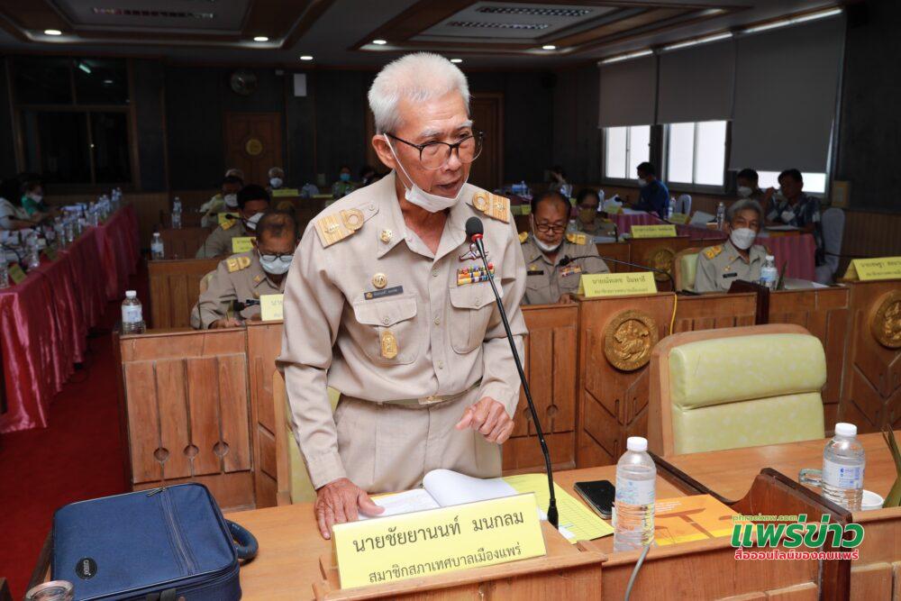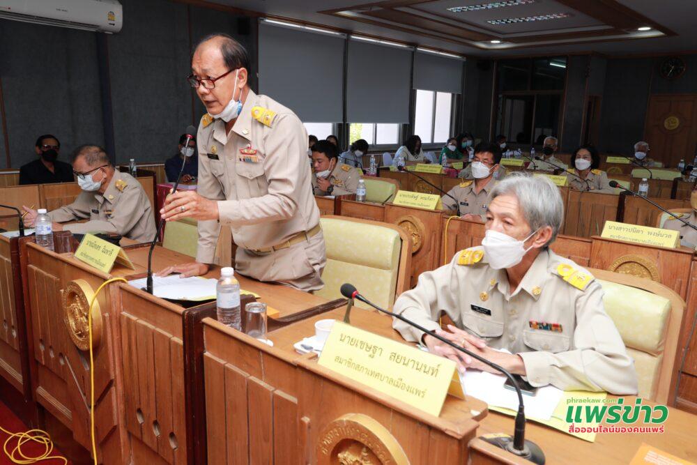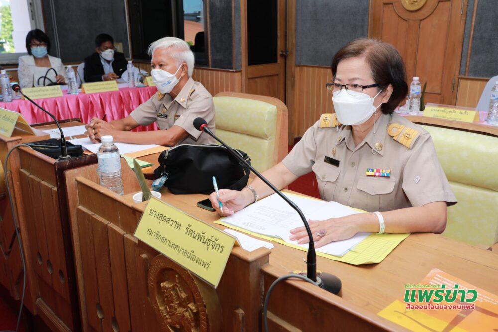 เพื่อให้สภาเทศบาลเมืองแพร่พิจารณาอนุมัติ โดยมีสมาชิกสภาเทศบาลเมืองแพร่เข้าร่วมประชุมทั้งสิ้นจำนวน 15 คน พร้อมด้วยปลัดเทศบาลเมืองแพร่ ผู้อำนวยการกอง หัวหน้าสำนักปลัดเทศบาล ผู้อำนวยการสถานศึกษาในสังกัดเทศบาลเมืองแพร่ และผู้ที่เกี่ยวข้องเข้าร่วมประชุม ณ ห้องประชุมสภาเทศบาลเมืองแพร่ สำนักงานเทศบาลเมืองแพร่