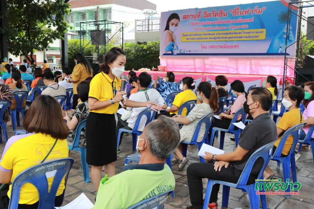 โดยมีพ่อค้าแม่ค่ามาลงทะเบียนจำนวนกว่า 200 ราย แต่อาจจะไม่ได้รับสิทธิ์ทุกรายเนื่องจากวัคซีนมีจำกัด โอกาสนี้นายโชคชัย พนมขวัญ นายกเทศมนตรีเมืองแพร่ พร้อมด้วยคณะผู้บริหาร สมาชิกสภาเทศบาลเมืองแพร่ ปลัดเทศบาลเมืองแพร่ รองปลัดเทศบาลเมืองแพร่ ผู้อำนวยการกอง หัวหน้าสำนักปลัดเทศบาล ร่วมลงพื้นที่พบปะพี่น้องประชาชน คอยอำนวยความสะดวกพร้อมทั้งให้ข้อควรปฏิบัติในการรับบริการฉีดวัคซีนฯ นอกจากนี้นายกเทศมนตรีเมืองแพร่ ได้เน้นย้ำ 4 สิ่งสำคัญแก่ประชาชนผู้เข้ารับวัคซีนฯ ดังนี้