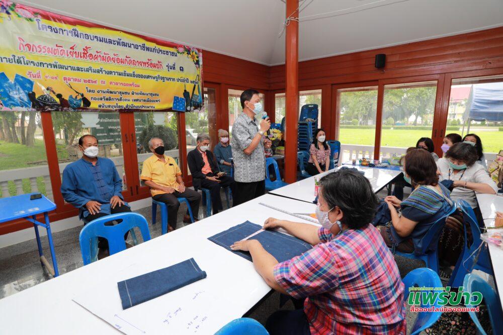 งานประชาสัมพันธ์เทศบาลเมืองแพร่แจ้งว่า ระหว่างวันที่ 9-14 ตุลาคม 2564 งานพัฒนาชุมชน กองสวัสดิการสังคม เทศบาลเมืองแพร่ จัดกิจกรรมตัดเย็บเสื้อจากผ้ามัดย้อมกัดลายพร้อมปัก รุ่นที่ 1 ตามโครงการฝึกอบรมและพัฒนาอาชีพแก่ประชาชน ประจำปี 2564 ณ ศาลารอดพร้อมและศูนย์เรียนรู้การย้อมผ้าหม้อห้อม (บ้านป้าเหงี่ยม)