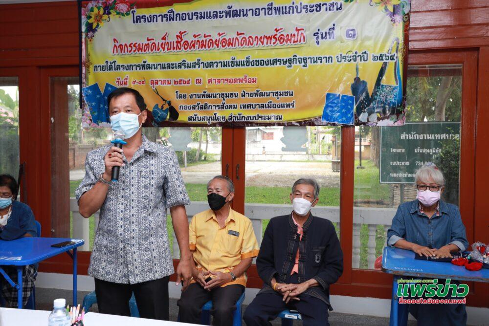โอกาสนี้นายโชคชัย พนมขวัญ นายกเทศมนตรีเมืองแพร่ มอบหมายให้นายพัฒนพงษ์ พงษ์นวล รองนายกเทศมนตรีเมืองแพร่ เป็นประธานปิดกิจกรรมพร้อมทั้งกล่าวให้กำลังใจผู้เข้าร่วมอบรมและขอบคุณคณะวิทยากรจากผู้เชี่ยวชาญด้านการเย็บปักถักผ้า โดยมีสมาชิกสภาเทศบาลเมืองแพร่ รองปลัดเทศบาลเมืองแพร่ ร่วมลงพื้นที่ให้กำลังใจแก่ผู้เข้าฝึกอบรม ณ ศาลารอดพร้อม อำเภอเมือง จังหวัดแพร่