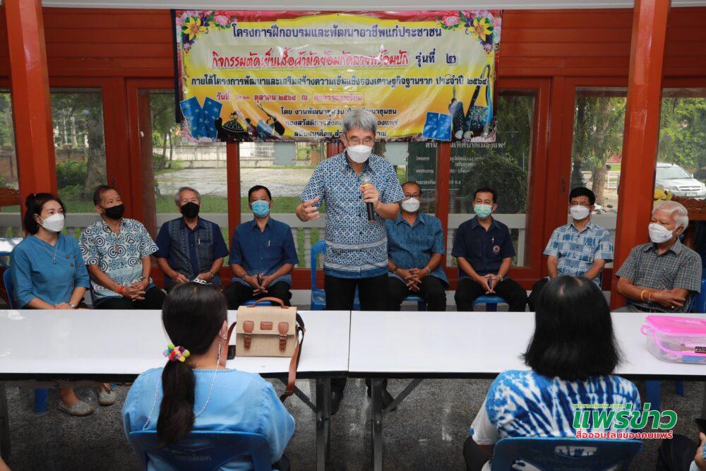 ระหว่างวันที่ 15-20 ตุลาคม 2564 งานพัฒนาชุมชน กองสวัสดิการสังคม เทศบาลเมืองแพร่ จัดกิจกรรมตัดเย็บเสื้อจากผ้ามัดย้อมกัดลายพร้อมปัก รุ่นที่ 2 ตามโครงการฝึกอบรมและพัฒนาอาชีพแก่ประชาชน ประจำปีงบประมาณ 2564 ณ ศาลารอดพร้อม (สวนสุขภาพเฉลิมพระเกียรติ ร.9 ) และศูนย์เรียนรู้การย้อมผ้าหม้อห้อม (บ้านป้าเหงี่ยม ต.ทุ่งโฮ้ง)