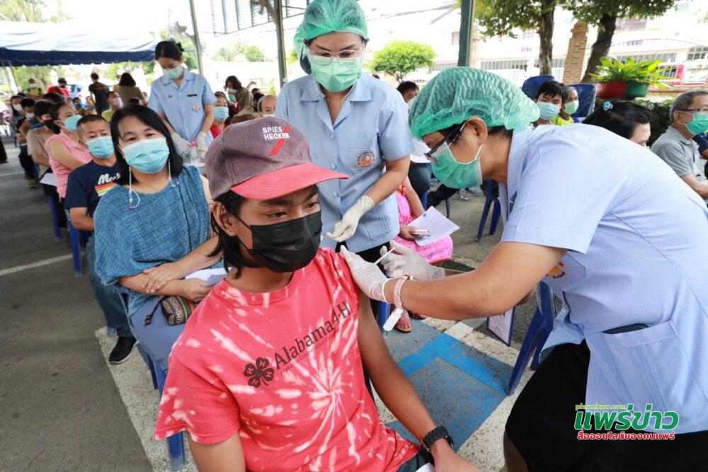 โอกาสนี้นายโชคชัย พนมขวัญ นายกเทศมนตรีเมืองแพร่ พร้อมด้วยคณะผู้บริหาร ปลัดเทศบาลเมืองแพร่ ผู้อำนวยการกองสาธารณสุขและสิ่งแวดล้อม ผู้อำนวยการกองยุทธศาสตร์และงบประมาณ หัวหน้าสำนักปลัดเทศบาล ร่วมลงพื้นที่พบปะพี่น้องประชาชน คอยอำนวยความสะดวกพร้อมทั้งให้คำแนะนำหลังการรับการฉีดวัคซีนฯ และขอบคุณคณะทีมแพทย์ พยาบาลและเจ้าหน้าที่จากโรงพยาบาลแพร่ เจ้าหน้าที่จากกองสาธารณสุขและสิ่งแวดล้อม และผู้ที่เกี่ยวข้องในการให้บริการฉีดวัคซีนดังกล่าว
