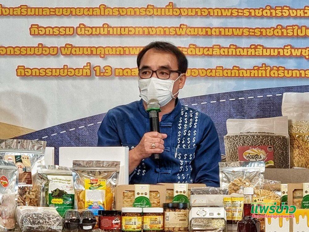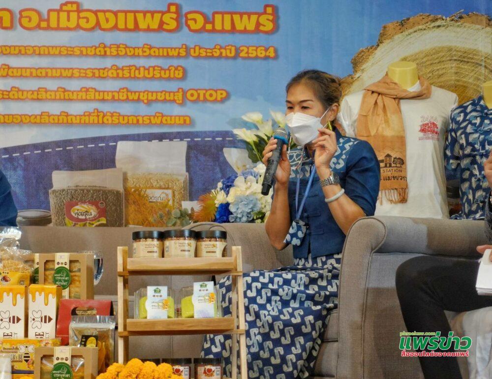 เมื่อวันที่ 20 ตุลาคม 2564 เวลา 10.00 น. ณ โรงแรมแพร่นครา อำเภอเมืองแพร่ จังหวัดแพร่ นายสมหวัง พ่วงบางโพ ผู้ว่าราชการจังหวัดแพร่ มอบหมายให้ นายสุสังข์ ชุ่มมะโน พัฒนาการจังหวัดแพร่ เป็นประธานแถลงข่าว ทดสอบตลาด “ชิม ช้อป ใช้ วิถีใหม่ สไตล์ แพร่” ตามโครงการส่งเสริม และขยายผลโครงการ อันเนื่องมาจากพระราชดำริจังหวัดแพร่ ประจำปี 2564 กิจกรรมน้อมนำแนวทางการพัฒนา ตามพระราชดำริ ไปปรับใช้ กิจกรรมย่อยที่1.3 ทดสอบตลาด ของผลิตภัณฑ์ ที่ได้รับการพัฒนา