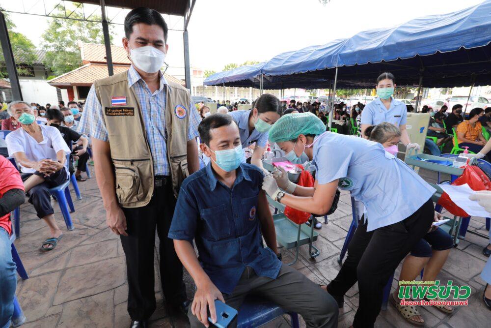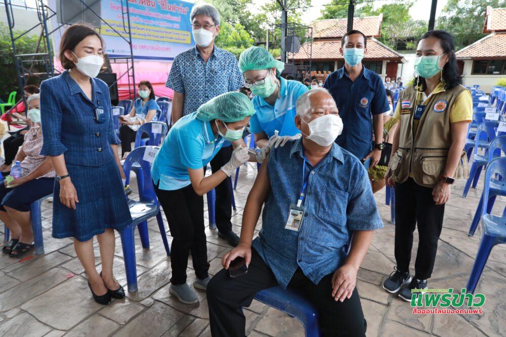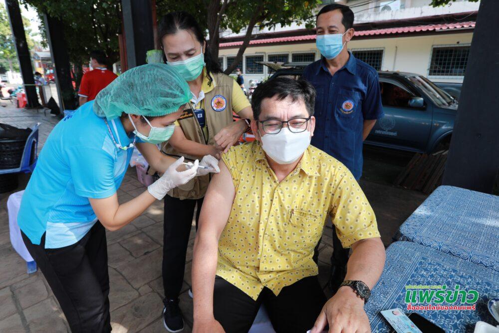 โดยมีนายวิเชียร อนุสาสนนันท์ รองผู้ว่าราชการจังหวัดแพร่ พร้อมด้วยนายสุรพล วงศ์สุขพิศาล ปลัดจังหวัดแพร่ นายสหยศ วงศ์บุรี รองนายกเทศมนตรีเมืองแพร่ และนายเอกชัย เพชรพราว รองปลัดเทศบาลเมืองแพร่ ร่วมเข้ารับการฉีดวัคซีน “ซิโนฟาร์ม” เข็มที่ 2 ในวันนี้ด้วย