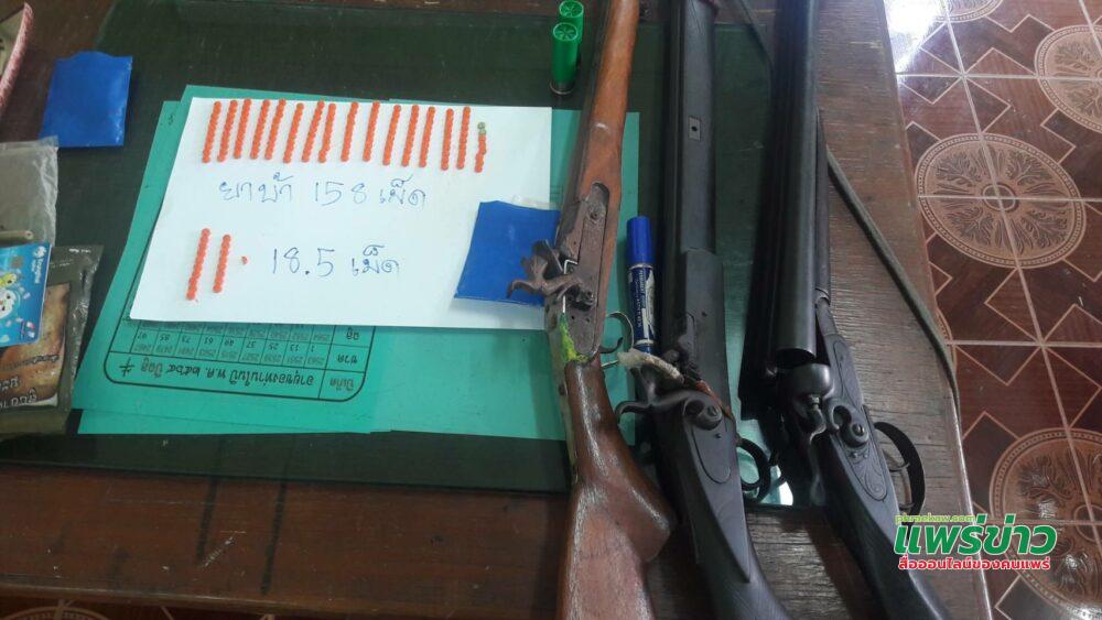 รายแรกเวลา 06.00 น. เข้าตรวจค้นตามหมายค้นของศาลจังหวัดแพร่ โดยเข้าตรวจค้นบ้านเลขที่ 13/5 หมู่ที่ 4 ต.ต้าผามอก อ.ลอง ผลการตรวจค้นพบอาวุธปืนลูกซองยาวชนิด 2 ลำกล้อง จำนวน 1 กระบอก พร้อมกระสุนปืนเบอร์ 12 จำนวน 2 นัด และได้สุ่มตรวจปัสสาวะพบผลเป็นบวก