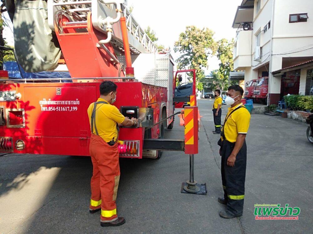 เมื่อวันจันทร์ที่ 8 พฤศจิกายน เวลา 09.00 น. งานป้องกันและบรรเทาสาธารณภัยเทศบาลเมืองแพร่ ดำเนินการฝึกประจำสัปดาห์ โดยการนำรถบันไดหอน้ำไปร่วมดำเนินการฝึก เพื่อช่วยเหลือผู้ประสบภัยลงจากอาคารสูง กรณีเกิดเหตุสาธารณภัยและผู้ประสบภัยติดอยู่ภายในอาคาร และเพื่อเป็นการเตรียมพร้อมรับสถานการณ์กรณีเกิดเหตุและเป็นการฝึกทักษะแก่เจ้าหน้าที่ให้มีความพร้อมอยู่เสมอในการช่วยเหลือชีวิตของประชาชน โอกาสนี้นายโชคชัย พนมขวัญ นายกเทศมนตรีเมืองแพร่ เข้าร่วมสังเกตการณ์พร้อมให้กำลังใจแก่พนักงานเทศบาลและเจ้าหน้าที่ในการฝึกดังกล่าว ทั้งนี้มีเจ้าหน้าที่ชุดเผชิญเหตุเข้าร่วมการฝึกจำนวนทั้งสิ้น 12 คน ณ บริเวณข่วงวัฒนธรรมเมืองแป้ (กาดสามวัย)
