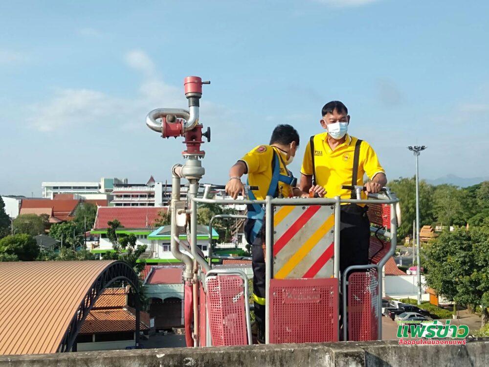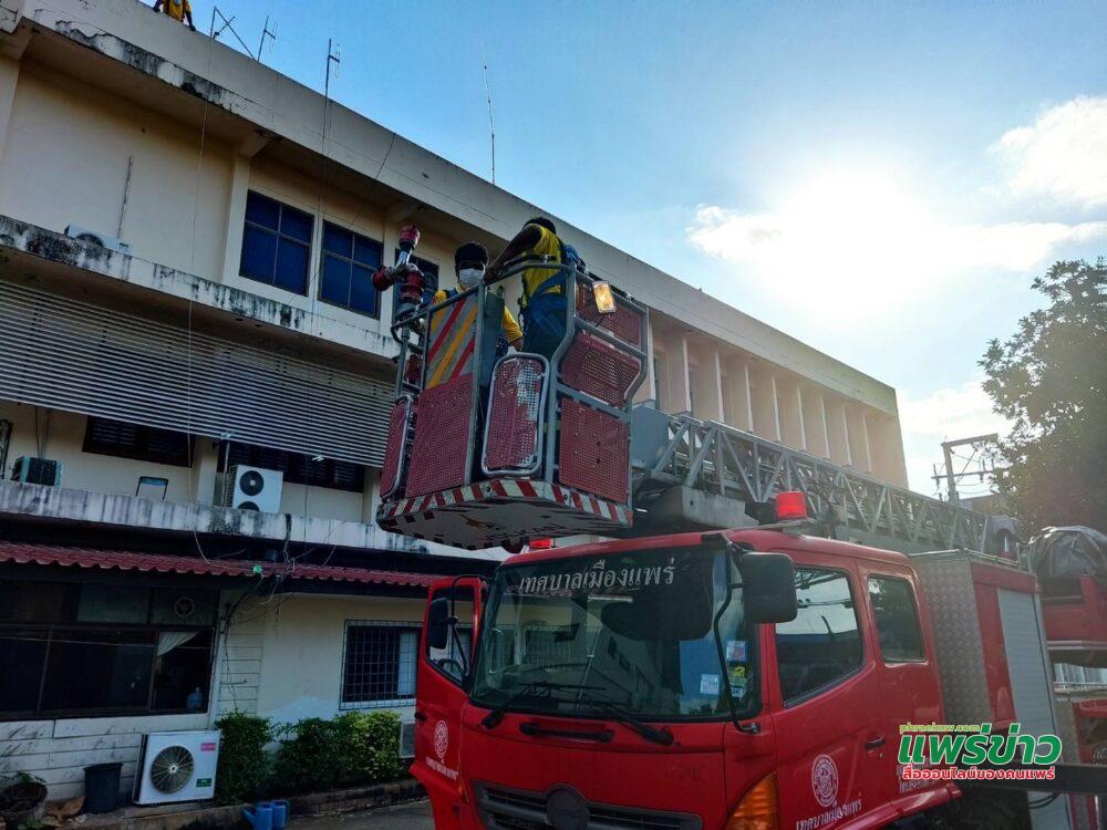 งานป้องกันและบรรเทาสาธารณภัยเทศบาลเมืองแพร่ ดำเนินการฝึกประจำสัปดาห์เพื่อช่วยเหลือผู้ประสบภัยจากอาคารสูง