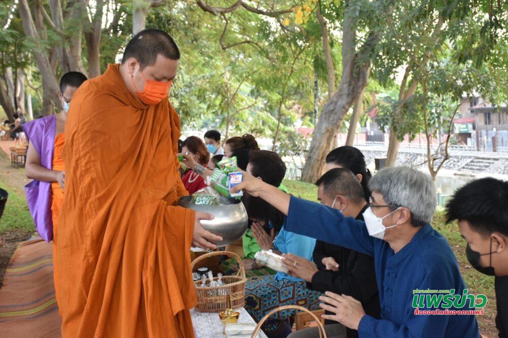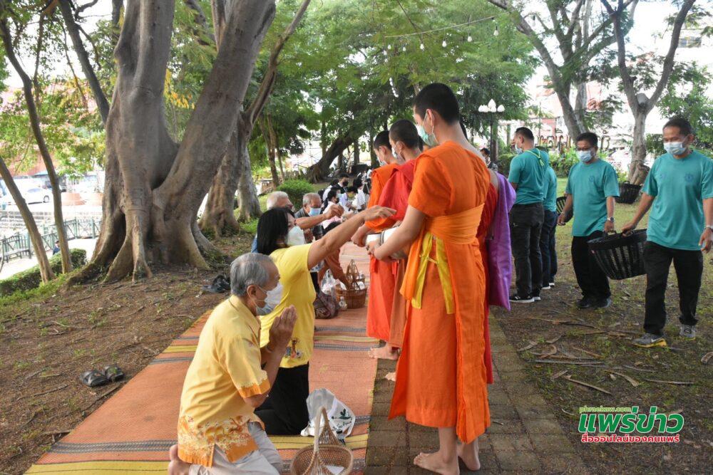 วันพุธที่ 10 พฤศจิกายน 2564 เวลา 07.00 น. เทศบาลเมืองแพร่ นำโดยนายโชคชัย พนมขวัญ นายกเทศมนตรีเมืองแพร่ พร้อมด้วยสมาชิกสภาเทศบาลเมืองแพร่ หัวหน้าสำนักปลัดเทศบาล ผู้อำนวยการกองการศึกษา ผู้อำนวยการโรงเรียนสาธิตเทศบาลบ้านเชตะวัน ผู้อำนวยการโรงเรียนเทศบาลวัดชัยมงคล คณะครูและนักเรียนโรงเรียนสาธิตเทศบาลบ้านเชตะวันและโรงเรียนเทศบาลวัดชัยมงคล พนักงานเทศบาล สโมสรไลออนส์แพร่ สโมสรโรตารี สโมสรโรตารีเวียงโกศัย สโมสรฟุตบอลแพร่ยูไนเต็ด ชมรมร้านอาหารแผงลอยและพี่น้องประชาชน ร่วมทำบุญตักบาตรบนเมก ณ บริเวณประตูชัยกำเเพงเมืองแพร่ (เมก) และรณรงค์การใช้ตระกร้าหรือถุงผ้าแทนถุงพลาสติกในการใส่ของทำบุญตักบาตร พร้อมทั้งแต่งกายด้วยผ้าพื้นเมือง รักษาอัตลักษณ์การแต่งกายของจังหวัดแพร่ และรักษาขนบธรรมเนียมประเพณีอันดีงามของท้องถิ่นให้คงอยู่สืบไป