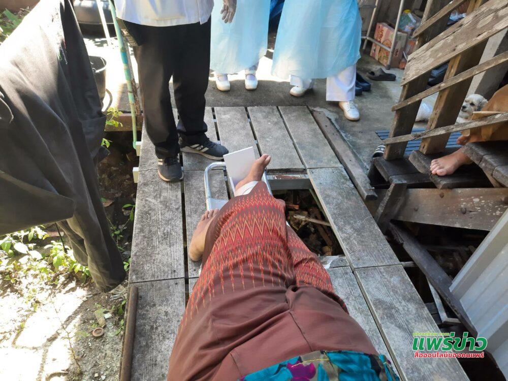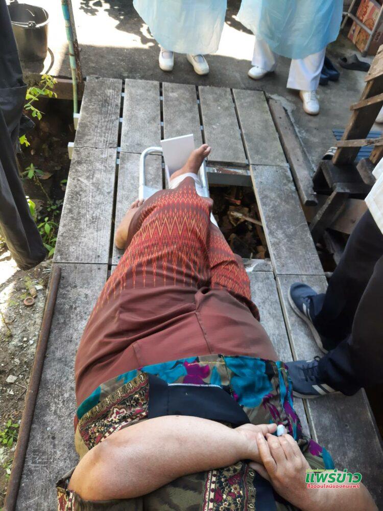 จากการสอบถาม นางหน่อย อายุ 60 ปี น้องสาวผู้บาดเจ็บ ทราบว่าก่อนเกิดเหตุ พี่สาวจะออกไปทำธุระที่ธนาคาร เมื่อเดินลงบ้านมา ปรากฏว่าเหยียบไม้พื้นหักขาลอดช่องไป เพราะน้ำตัวหนักเยอะ ได้รับบาดเจ็บร้องให้ช่วยเหลือ ซึ่งในบ้านก็เป็นผู้หญิงอยู่ทั้ง 3 คน ป้าน้อยอายุ 69 ปี ร่างกายก็ไม่แข็งแรง ส่วนตนเองก็มีโรคกล้ามเนื้ออ่อนแรงช่วงล่าง ไม่สามารถจะเดินได้ตามปกติ จึงไม่มีใครสามารถไปช่วยเหลือได้ จึงได้โทรขอความช่วยเหลือ