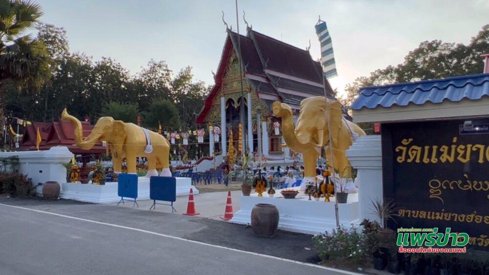 เมื่อเวลา 18.09 น. ค่ำวันที่ 20 พฤศจิกายน 2564 ที่วัดแม่ยางพัฒนา หมู่ 5 ต.แม่ยางฮ่อ อ.ร้องกวาง จ.แพร่ นายนิพนธ์ บุญศัพท์ ผู้ใหญ่บ้าน หมู่ 5 บ้านแม่ยางพัฒนา ร่วมกับชาวบ้านและคณะศรัทธา ได้จัดพิธีบวงสรวงและขอขมาสิ่งศักดิ์สิทธิ์ภายในวัดแม่ยางพัฒนา มี ช้างทองคู่ หน้าประตูวัด พระเจ้าเปิดโลกปางประทานพร พระสิวลี พระอุปคุต พญาอนันตนาคราช เจ้าแม่ตะเคียนทองคู่ ไอ้ไข่ ซึ่งสิ่งศักดิ์สิทธิ์ข้างต้น ที่ชาวบ้านได้เลื่อมใสศรัทธามาขอพรและให้โชคอยู่เนืองๆ