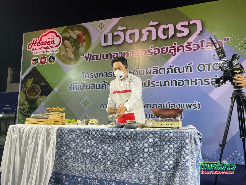 ทางด้าน นายวรวัจน์ เอื้ออภิญญกุล อดีตรมว.กระทรวงวิทยาศาสตร์และเทคโนโลยี กล่าวว่า วันนี้จังหวัดแพร่ กำลังจะมีสินค้าผลิตภัณฑ์ OTOP ประเภทอาหารรูปแบบใหม่ ภายใต้แบรนด์ใหม่ ซึ่งเป็นแบรนด์ของจังหวัดแพร่ จากฝีมือเชฟระดับโลก เชฟชุมพล แจ้งไพร มิชลินสตาร์ 2 ดาว จึงอยากให้ทุกคนได้ลองชิม เพราะเป็นอาหารที่ใช้เทคโนโลยีสมัยใหม่ ถนอมอาหารเยือกแข็งด้วยระบบไนโตรเจน ซึ่งทำให้อาหารยังคงความสดเหมือนเพิ่งปรุงเสร็จใหม่ รสชาติอร่อย เก็บได้นาน โดยไม่ใช้ วัตถุกันเสีย ไม่ใส่ผงชูรสและดีต่อสุขภาพ ถ้าคุณได้ลองแล้วจะไม่ผิดหวังประชาชนชาวจังหวัดแพร่ มีรายได้จากการจำหน่ายผลิตภัณฑ์ประเภทอาหารเพิ่มยอดจำหน่ายผลิตภัณฑ์ OTOP จากปี 2564 จำนวน 1,497.30 ล้านบาท สู่เป้าหมาย 1,602.12 ล้านบาท ในปี 2565 เพิ่มช่องทางการตลาดผลิตภัณฑ์กลุ่มอาชีพที่ได้รับการพัฒนา ทำให้ประชาชนมีอาชีพและมีรายได้เพิ่มขึ้น เพื่อกระตุ้นเศรษฐกิจที่กำลังได้รับผลกระทบจากสถานการณ์โควิด-19 และเชิญพี่น้อง นักท่องเที่ยว เข้ามาท่องเที่ยว เลือกชิมเลือกซื้อผลิตภัณฑ์เป็นผลิตภัณฑ์ได้รับการพัฒนาให้มีคุณภาพและรูปแบบตอบสนต้องการของผู้บริโภคมากขึ้น เป็นการกระตุ้นเศรษฐกิจฐานรากของชุมชนและภาพรวมของจังหวัด สร้างความกินดีอยู่ดี มีความสุขของพี่น้องชาวแพร่