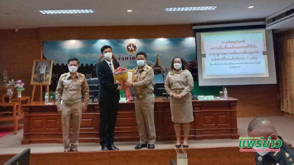 ผู้สื่อข่าวรายงานว่า เมื่อวันที่ 30 พ.ย.64 นายสมหวัง พ่วงบางโพ ผวจ.แพร่ มอบเกียรติบัตร สถานรับเลี้ยงเด็กเทพนารีเป็นสถานพัฒนาเด็กปฐมวัยที่ได้รับมาตรฐานในระดับดีมาก ( 95.51 คะแนน ) ประจำปี 2564 ตามมาตรฐานสถานพัฒนาเด็กปฐมวัยแห่งชาติ โดยมี นายสิทธิเดช พันธุ์นิติพงศ์ ผู้จัดการโรงเรียนเทพนารี อ.สูงเม่น จ.แพร่ เป็นผู้รับมอบฯ ณ ห้องประชุมศาลากลางจังหวัดแพร่