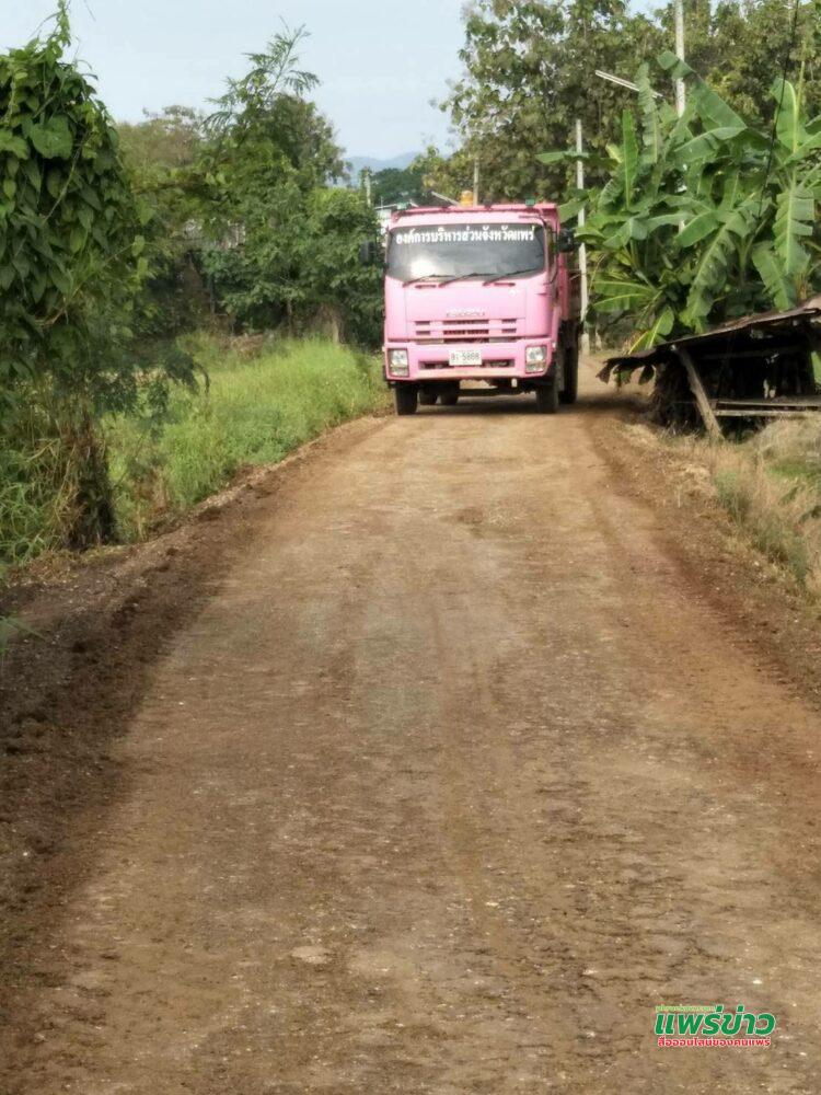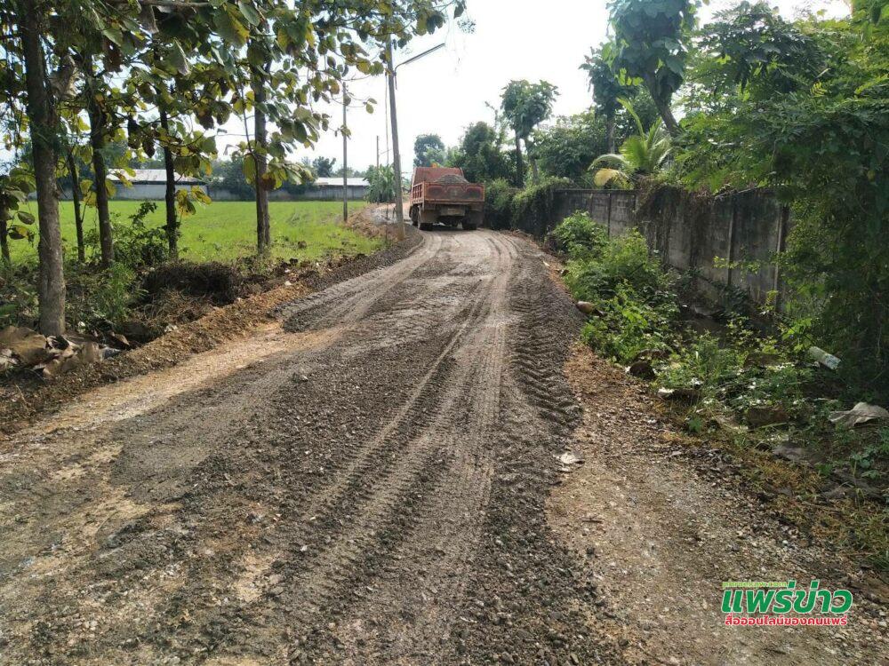 สจ.ปิ้น!ทศนาถ สำเนียง ส.อบจ.แพร่ เขต 3 อ.สูงเม่น เดินเครื่องเร่งปรับปรุงถนนลูกรังด้วยหินคลุก