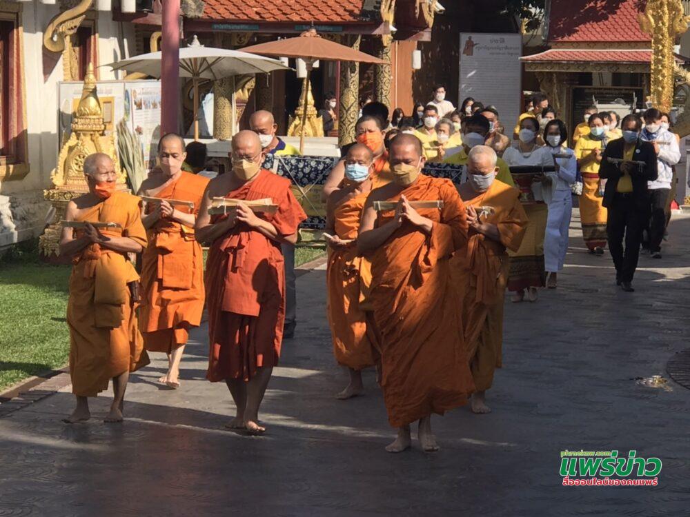 เมื่อเวลา 09.30 น. วันที่ 4 ธ.ค.64 นายศิวัช ฟูบินทร์ นายอำเภอสูงเม่น พร้อมด้วย นางชลธิชา ฟูบินทร์ นายกกิ่งกาชาด อ.สูงเม่น ร่วมพิธีถวายใบลานธัมม์ เพื่อพ่อ ปีที่ 1 บุญสืบสาน รักษา ต่อยอด ใบลานธัมม์ เพื่อพ่อ ณ วัดสูงเม่น อ.สูงเม่น จ.แพร่ โดยมี ดร.นันทศักดิ์ โชติชนะเดชาวงศ์ ผู้อำนวยการกองคุ้มครองและส่งเสริมภูมิปัญญาการแพทย์แผนไทยและแพทย์พื้นบ้านไทย กรมการแพทย์แผนไทยและการแพทย์ทางเลือก กระทรวงสาธารณสุข พร้อมด้วยคณะ ข้าราชการจาก สนง.วัฒนธรรมจังหวัดแพร่ ทท.สนง.แพร่ สนง.พระพุทธศาสนาจังหวัดแพร่ และคณะศรัทธาเข้าร่วมพิธี
