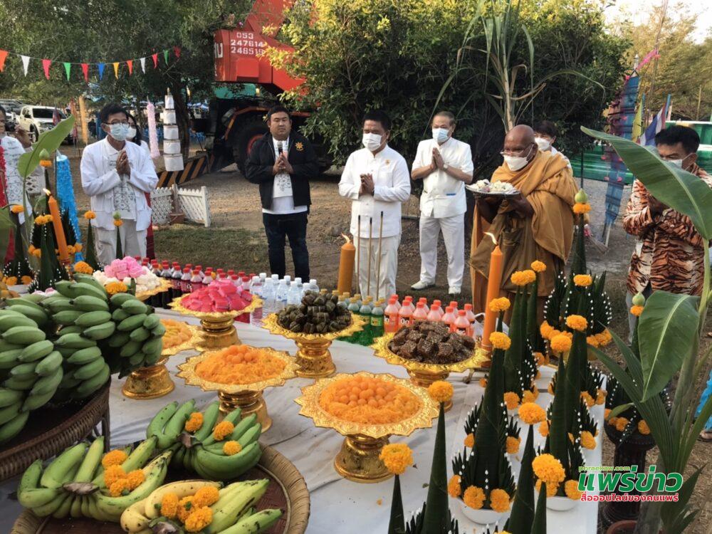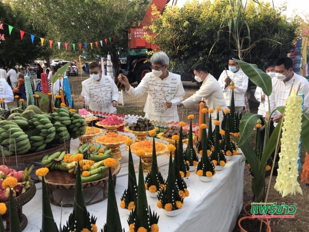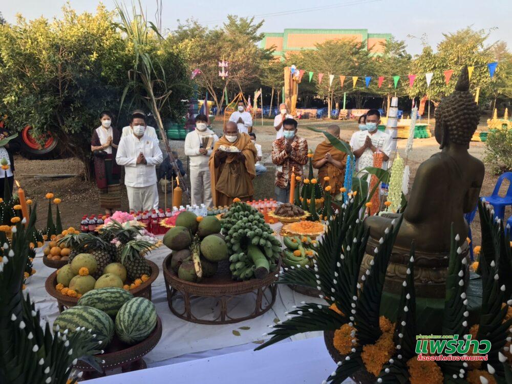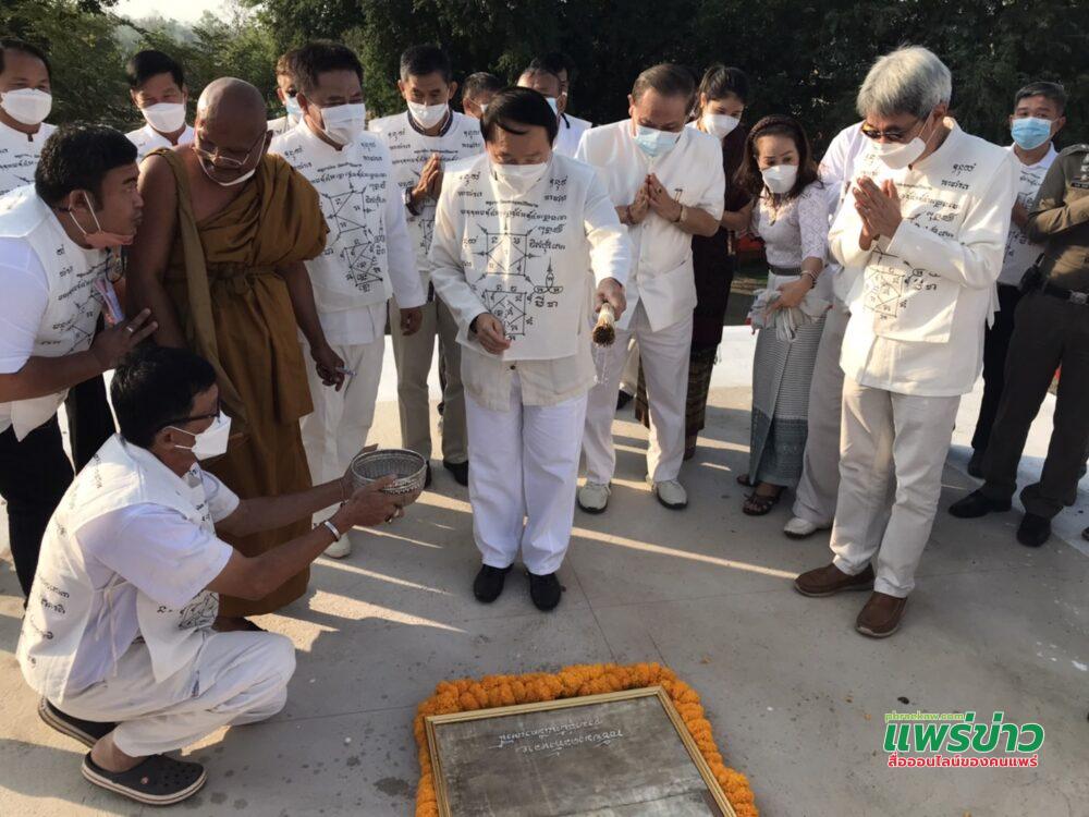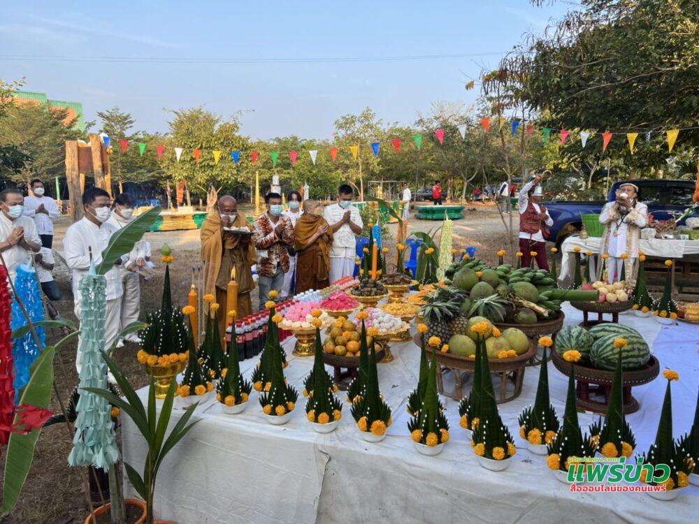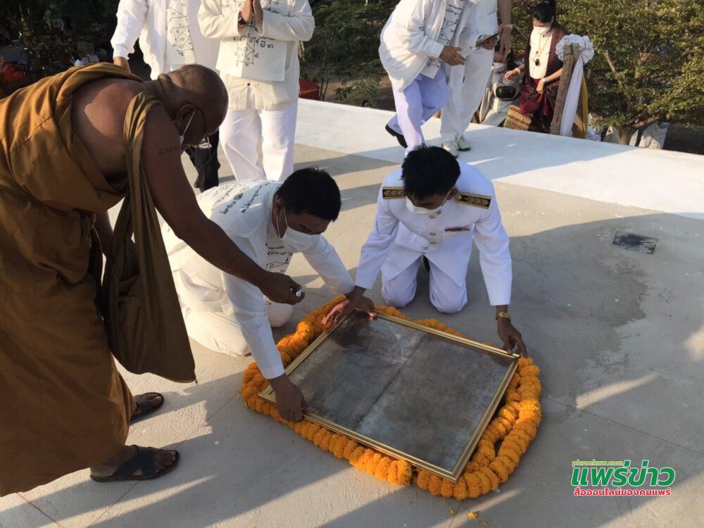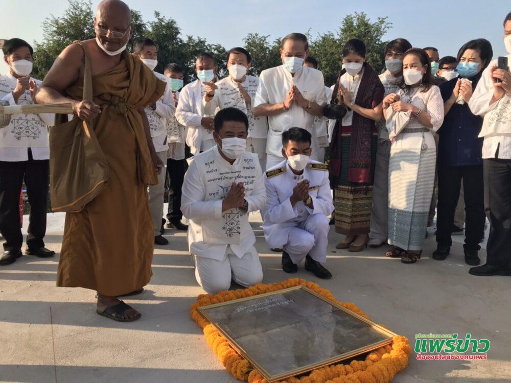 โดยพิธีการเริ่มตั้งแต่การบวงสรวงสิ่งศักดิ์สิทธิ์ จากนั้น เวลา 07.30 น. เป็นพิธีทางศาสนา การทำบุญตักบาตร และเวลา 08.09 น. เป็นพิธีวางศิลาฤกษ์ โดยผู้ว่าราชการ จ.แพร่ และ แขกผู้มีเกียรติ หลายๆ ท่าน โดยภายในงานมีพุทธศาสนิกชนจำนวนมาก ร่วมพิธี เนื่องจากเป็นที่เดียวในโลก ที่ทมีพิธีสร้างพระธาตุภายในวันเดียว