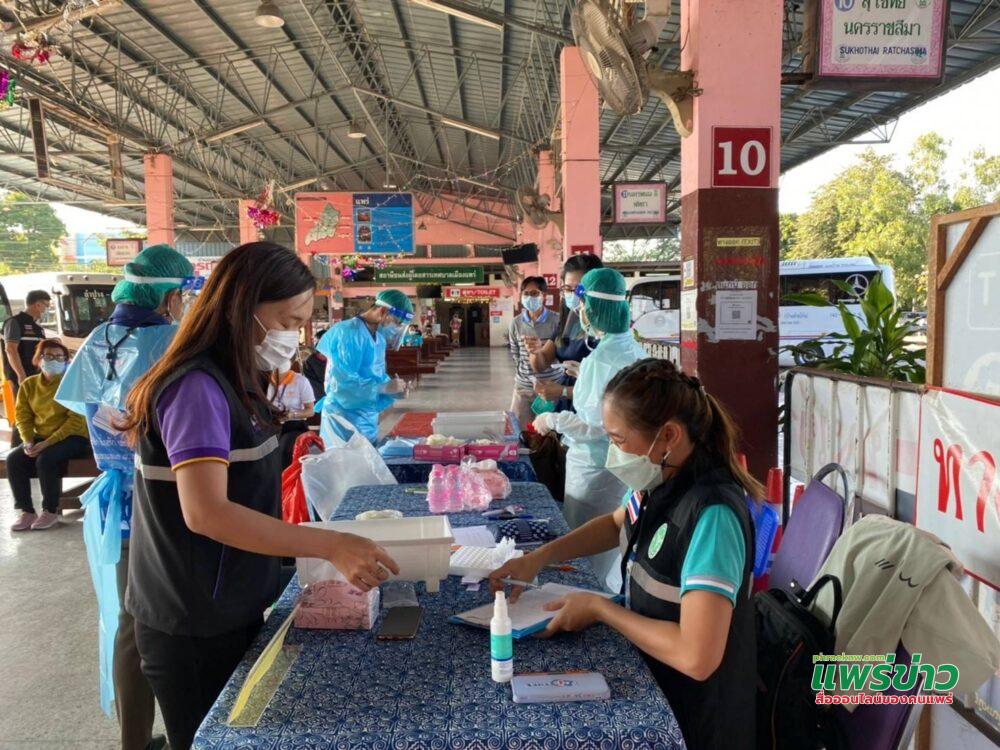 จังหวัดแพร่ ปรับมาตรการป้องกันควบคุมโรคโควิด-19 สายพันธุ์โอไมครอนในผู้เดินทางเข้าพื้นที่จังหวัดแพร่ ให้เข้มข้นขึ้น โดยได้จัดทีมเฝ้าระวังและสุ่มตรวจ ATK พร้อมจุดบริการนัดฉีดวัคซีนในสถานีขนส่งผู้โดยสารเทศบาลเมืองแพร่