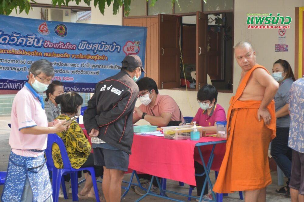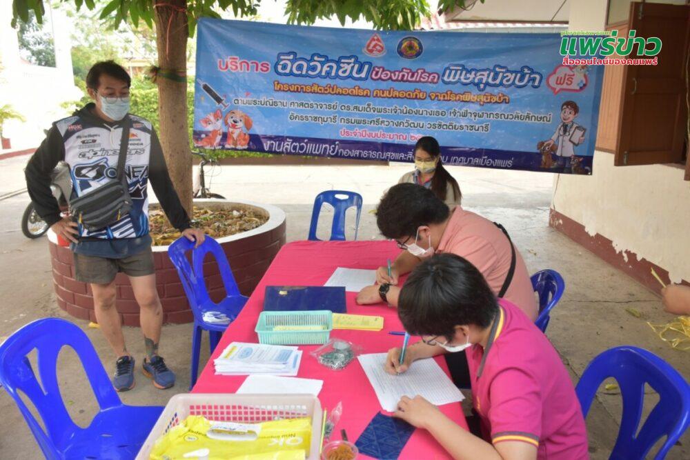 วันอังคารที่ 7 มีนาคม 2566 เวลา 09.00-12.00 น. งานสัตวแพทย์ ฝ่ายบริการสาธารณสุข กองสาธารณสุขและสิ่งแวดล้อม เทศบาลเมืองแพร่ โดยสัตวแพทย์อาวุโส และเจ้าหน้าที่กองสาธารณสุขและสิ่งแวดล้อม ดำเนินโครงการป้องกันและควบคุมโรคพิษสุนัขบ้าตามโครงการ “สัตว์ปลอดโรค คนปลอดภัย จากโรคพิษสุนัขบ้า” ตามพระปณิธานศาสตราจารย์ ดร.สมเด็จพระเจ้าน้องนางเธอ เจ้าฟ้าจุฬาภรณวลัยลักษณ์ อัครราชกุมารี กรมพระศรีสวางควัฒน วรขัตติยราชนารี โดยรณรงค์ฉีดวัคซีนป้องกันโรคพิษสุนัขบ้าและฉีดยาคุมกำเนิดให้แก่สัตว์เลี้ยง (สุนัขและแมว) ในเขตเทศบาลเมืองแพร่ เพื่อลดอัตราการเพิ่มจำนวนของสุนัขและแมวและโรคพิษสุนัขบ้าในสัตว์เลี้ยง อีกทั้งป้องกันไม่ให้มีผู้เสียชีวิตด้วยโรคนี้อย่างต่อเนื่องเป็นประจำทุกปี โดยวันนี้เป็นการออกให้บริการแก่ประชาชนชุมชนชัยมงคล ณ วัดชัยมงคล ตำบลในเวียง อำเภอเมือง จังหวัดแพร่