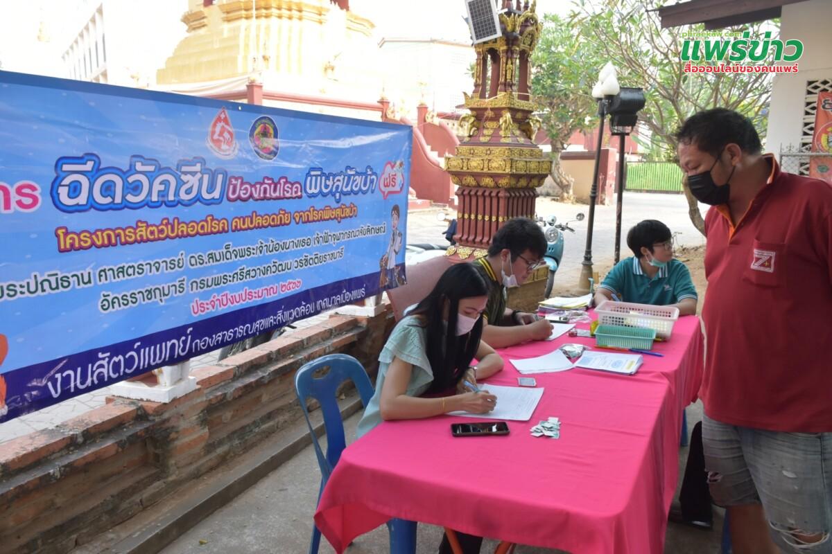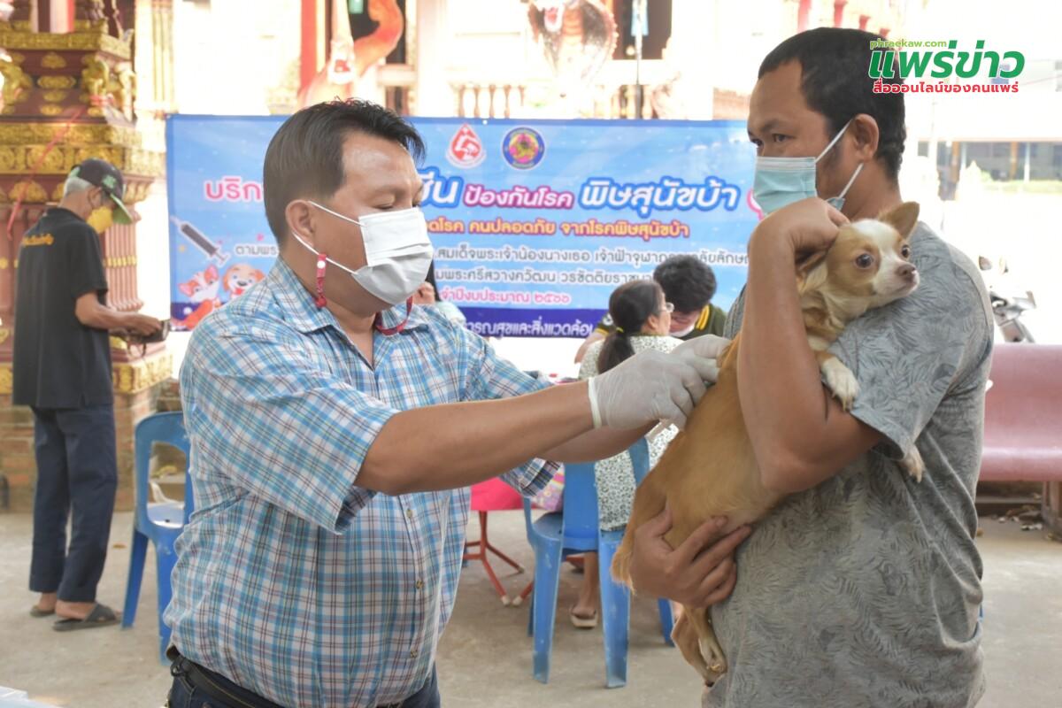 งานประชาสัมพันธ์เทศบาลเมืองแพร่ แจ้งว่าเมื่อวันพุธที่ 8 มีนาคม 2566 เวลา 09.00-12.00 น. งานสัตวแพทย์ ฝ่ายบริการสาธารณสุข กองสาธารณสุขและสิ่งแวดล้อม เทศบาลเมืองแพร่ โดยสัตวแพทย์อาวุโส และเจ้าหน้าที่กองสาธารณสุขและสิ่งแวดล้อม ดำเนินโครงการป้องกันและควบคุมโรคพิษสุนัขบ้าตามโครงการ “สัตว์ปลอดโรค คนปลอดภัย จากโรคพิษสุนัขบ้า” ตามพระปณิธานศาสตราจารย์ ดร.สมเด็จพระเจ้าน้องนางเธอ เจ้าฟ้าจุฬาภรณวลัยลักษณ์ อัครราชกุมารี กรมพระศรีสวางควัฒน วรขัตติยราชนารี โดยรณรงค์ฉีดวัคซีนป้องกันโรคพิษสุนัขบ้าและฉีดยาคุมกำเนิดให้แก่สัตว์เลี้ยง (สุนัขและแมว) ในเขตเทศบาลเมืองแพร่ เพื่อลดอัตราการเพิ่มจำนวนของสุนัขและแมวและโรคพิษสุนัขบ้าในสัตว์เลี้ยง อีกทั้งป้องกันไม่ให้มีผู้เสียชีวิตด้วยโรคนี้อย่างต่อเนื่องเป็นประจำทุกปี โดยวันนี้เป็นการออกให้บริการแก่ประชาชนชุมชนบ้านใหม่สวรรคนิเวศ ณ วัดสวรรคนิเวศ ตำบลในเวียง อำเภอเมือง จังหวัดแพร่